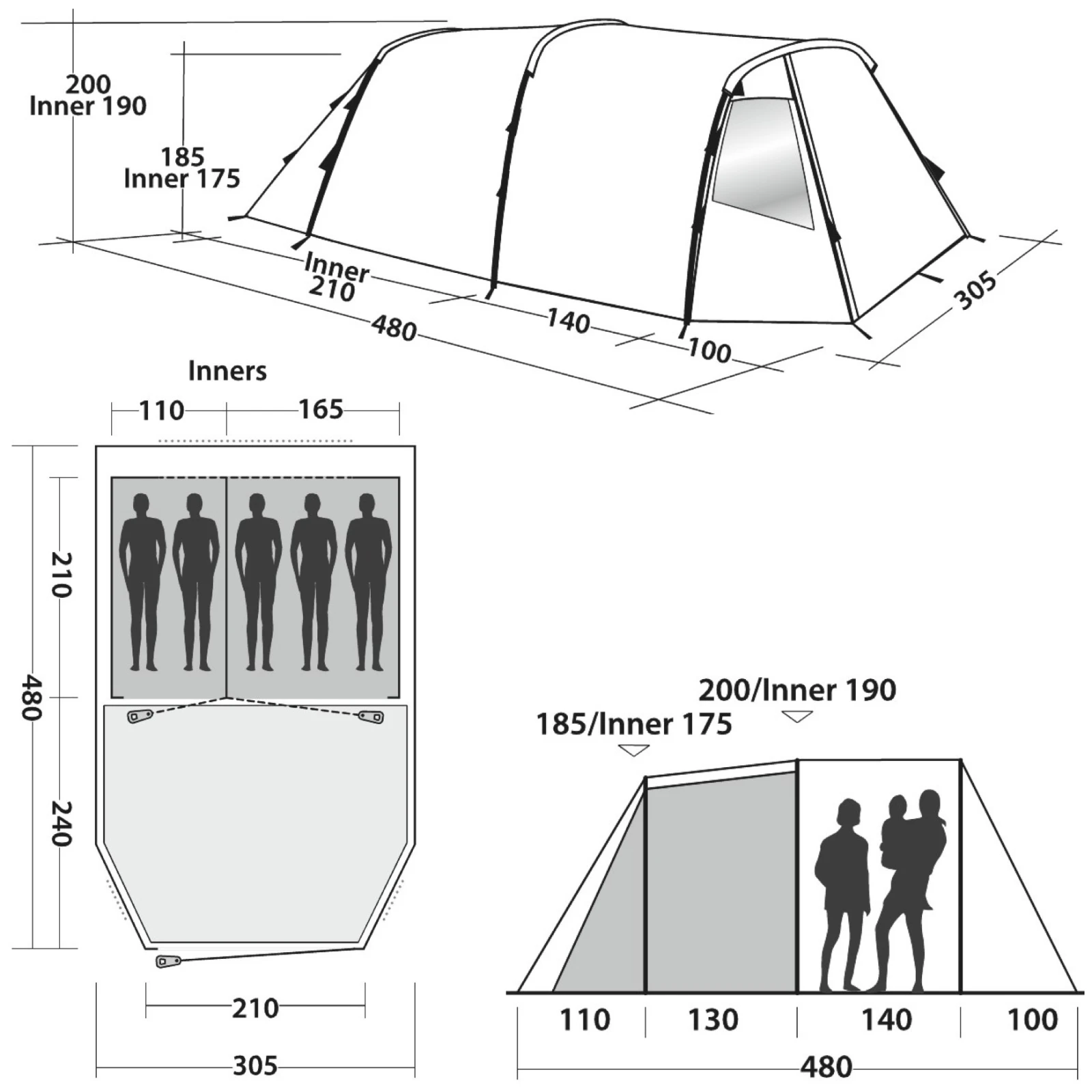 Es wird vor allem bei Familienzelten verwendet, bei denen der Schwerpunkt auf nutzbarem Raum und Komfort liegt. Mehr Schlafzimmer bedeuten mehr Privatsphäre und mehr Vielfalt im Innenraum.