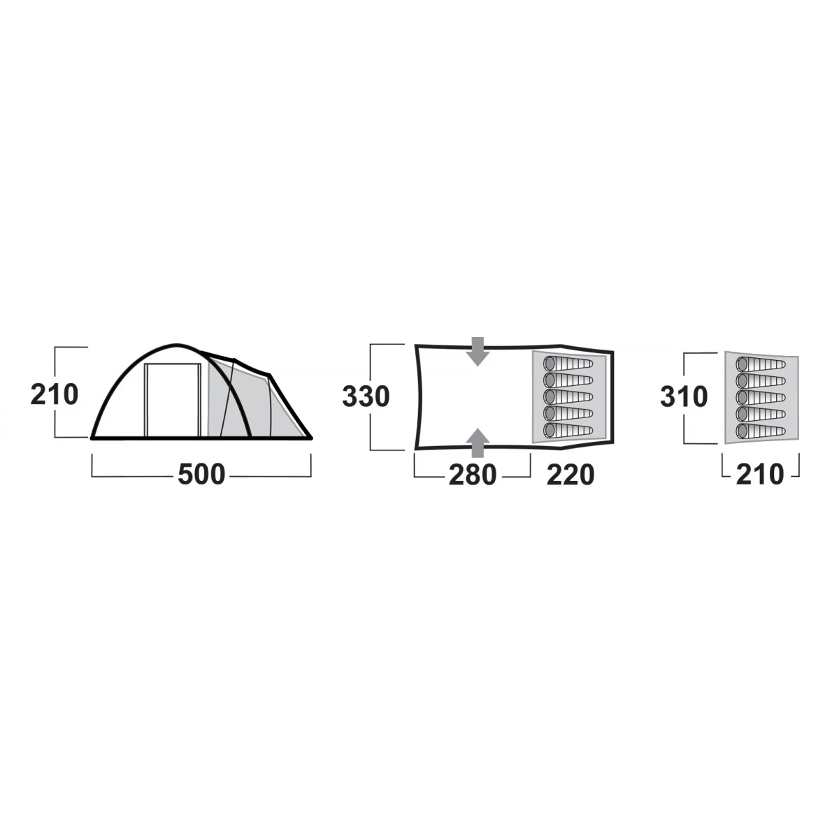 Es wird vor allem bei Familienzelten verwendet, bei denen der Schwerpunkt auf nutzbarem Raum und Komfort liegt. Mehr Schlafzimmer bedeuten mehr Privatsphäre und mehr Vielfalt im Innenraum.