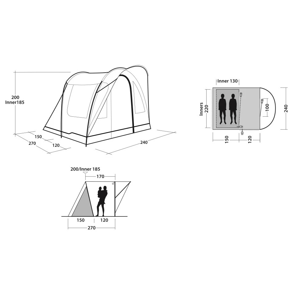 Das Familienzelt Sky 2 der Marke Outwell ist die perfekte Wahl für aktive Paare oder Familien, die gerne in die Natur gehen. Im Zelt können bequem zwei Personen schlafen.