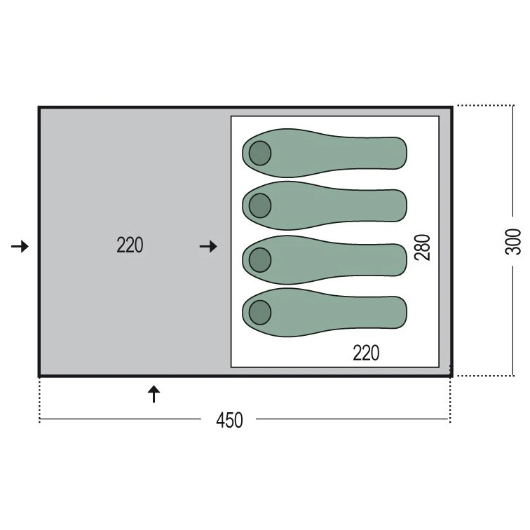 Es wird vor allem bei Familienzelten verwendet, bei denen der Schwerpunkt auf nutzbarem Raum und Komfort liegt. Mehr Schlafzimmer bedeuten mehr Privatsphäre und mehr Vielfalt im Innenraum.