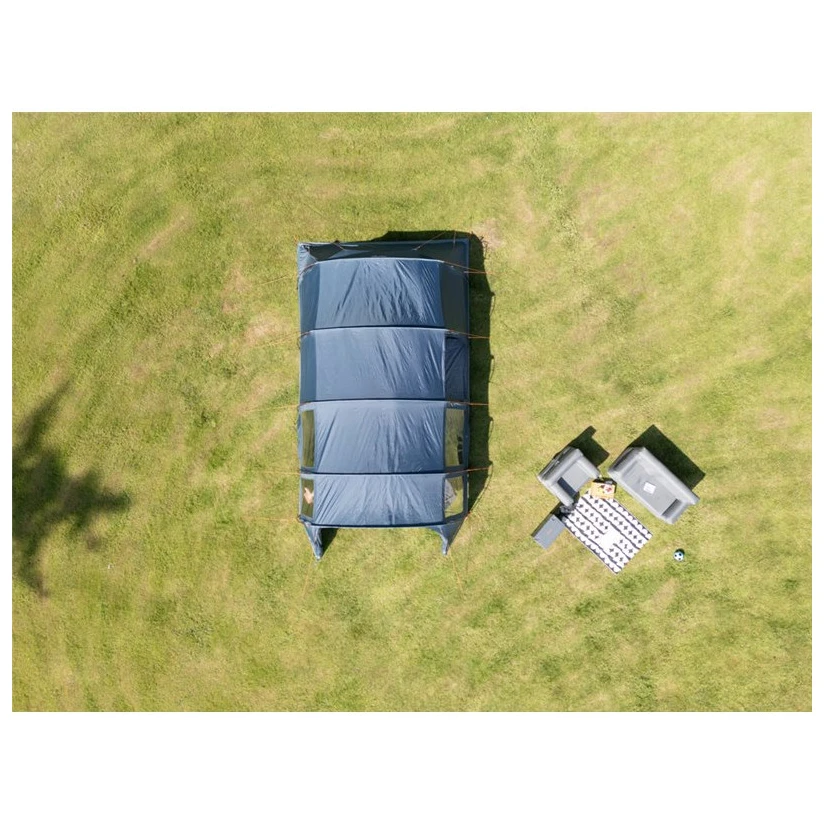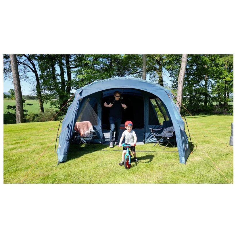 Das Zelt ist mit einem Drop Down Door Step -System ausgestattet – einer Falttür, die das Betreten mit Kinderwagen oder Rollstuhl erleichtert. Das AirZone -Panel sorgt dank hoch und niedrig angebrachten Belüftungspaneelen für eine bessere Luftzirkulation im Wohnbereich des Zeltes.
