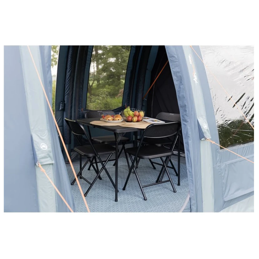 Das Zelt ist mit einem integrierten AirZone-Belüftungspaneelausgestattet, das für eine bessere Luftzirkulation im Wohnbereich des Zelts sorgt und das Innenklima frisch hält. Herunterklappbare Türstufe erleichtert den Zugang mit Kinderwagen oder Rollstühlen. Dieses Zelt bietet einen großen Wohnraum, der sich ideal zum Aufstellen von Campingmöbeln, einem Tisch und anderer Ausrüstung eignet.