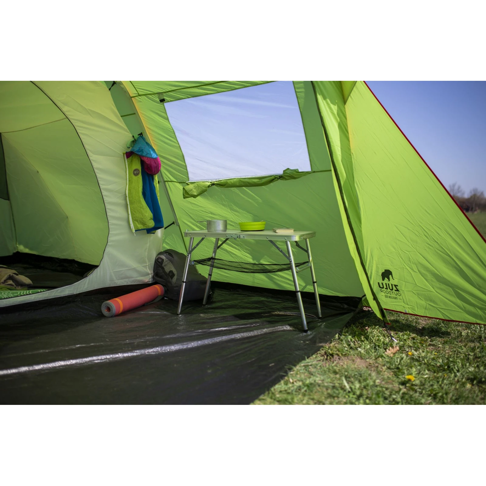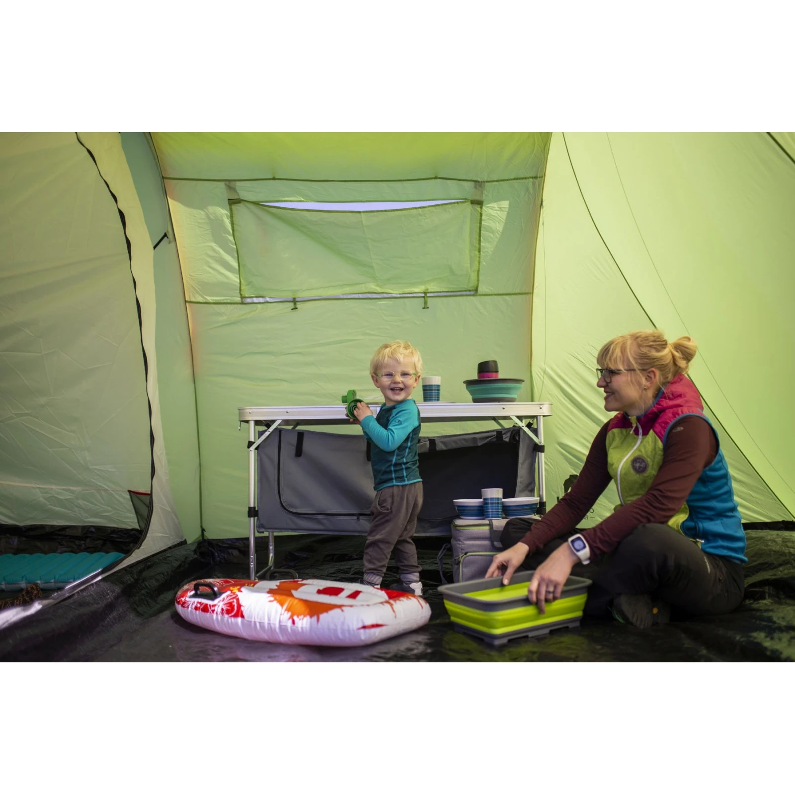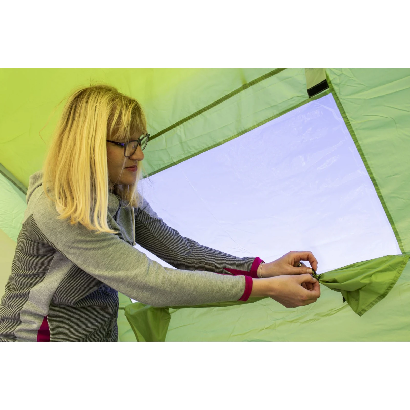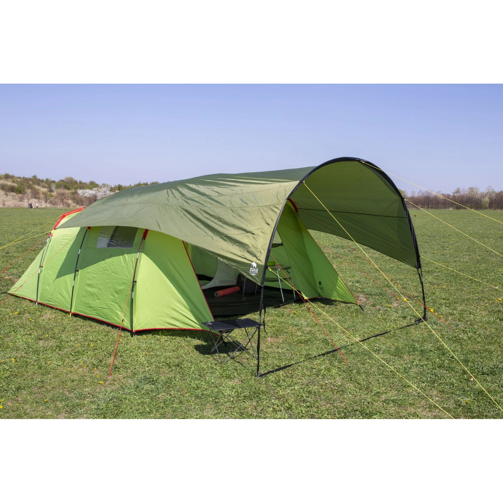 FamilienzeltZulu Pavilion 500 macht Ihren Aufenthalt in der Natur zu einem unvergesslichen Erlebnis. Der Aufbau selbst ist einfach. Farbcodierte Stäbe und passende Tunnel erleichtern Ihnen die Arbeit. Die Befestigung der Bodenmatte erfolgt ganz einfach mittels Klettverschluss. So kann es nicht passieren, dass mitten im Urlaub der Reißverschluss kaputt geht und Wasser aus dem Boden ins Zelt läuft.