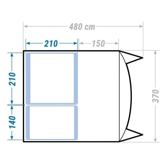 Es wird vor allem bei Familienzelten verwendet, bei denen der Schwerpunkt auf nutzbarem Raum und Komfort liegt. Mehr Schlafzimmer bedeuten mehr Privatsphäre und mehr Vielfalt im Innenraum.