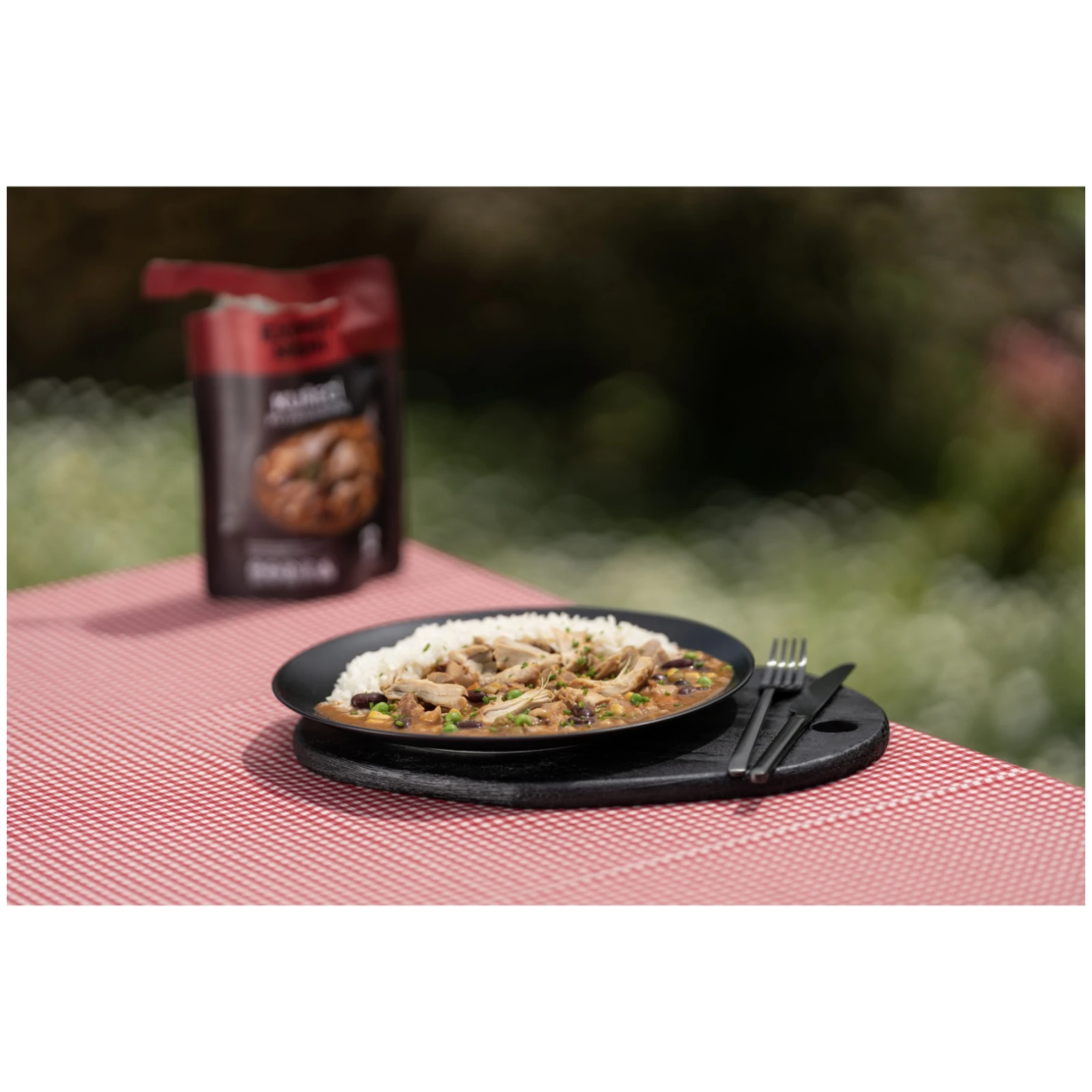 Das Gericht für zwei Portionen Garden Chicken enthält saftige Hähnchenschenkelstücke in einer Sauce mit einer Gemüsemischung. Bohnen sind eine hervorragende Ballaststoff- und Proteinquelle und enthalten zudem nur wenig Fett, was nicht nur Diäthaltende zu schätzen wissen. Darüber hinaus machen sie schnell satt und versorgen dich mit den nötigen Nährstoffen. Dieses Gericht ist auch für Kinder oder Personen geeignet, die eine Diät zur Gewichtsreduktion machen. Dieses Gericht beinhaltet keine Beilage, sodass Sie es immer genau nach Ihrem Geschmack zubereiten können.