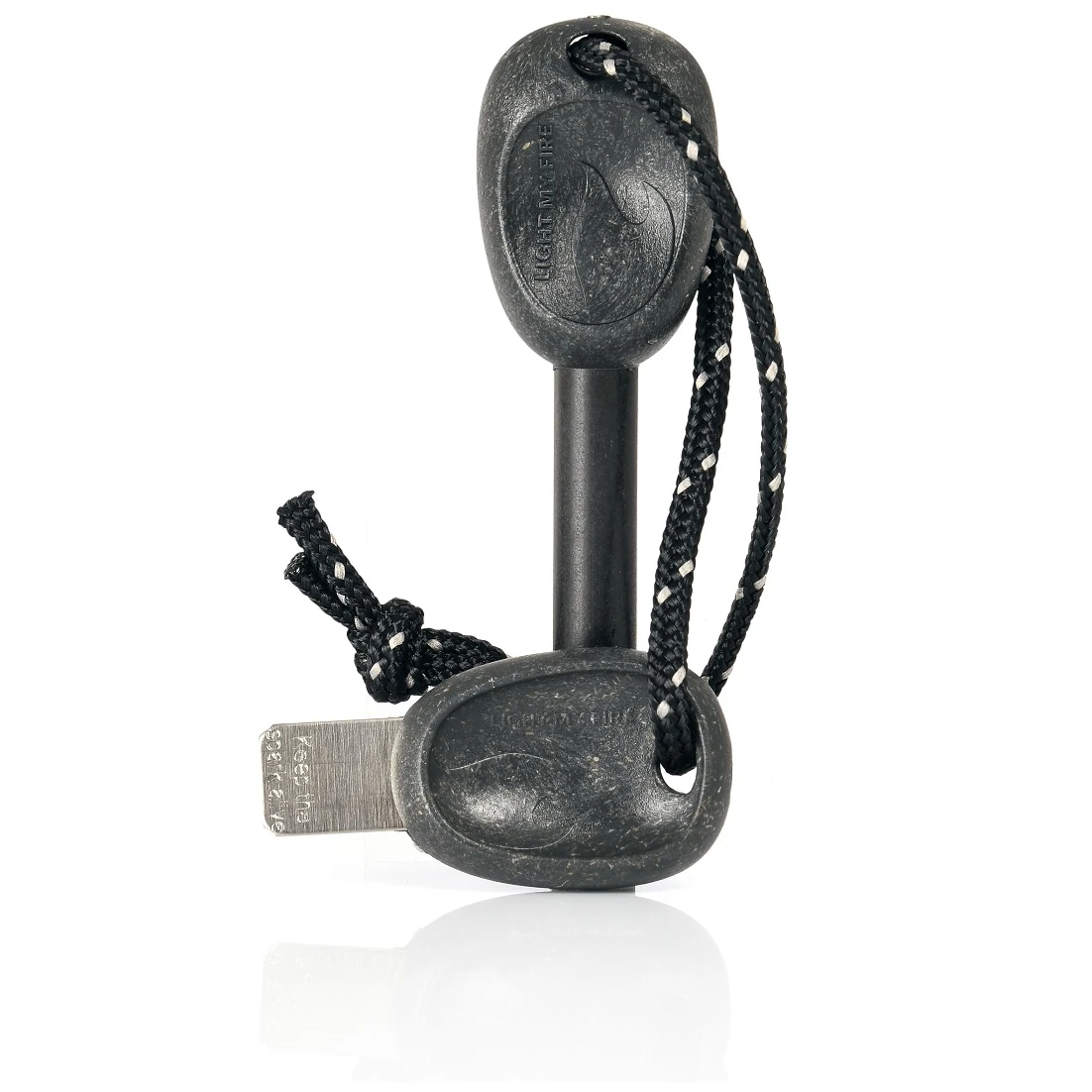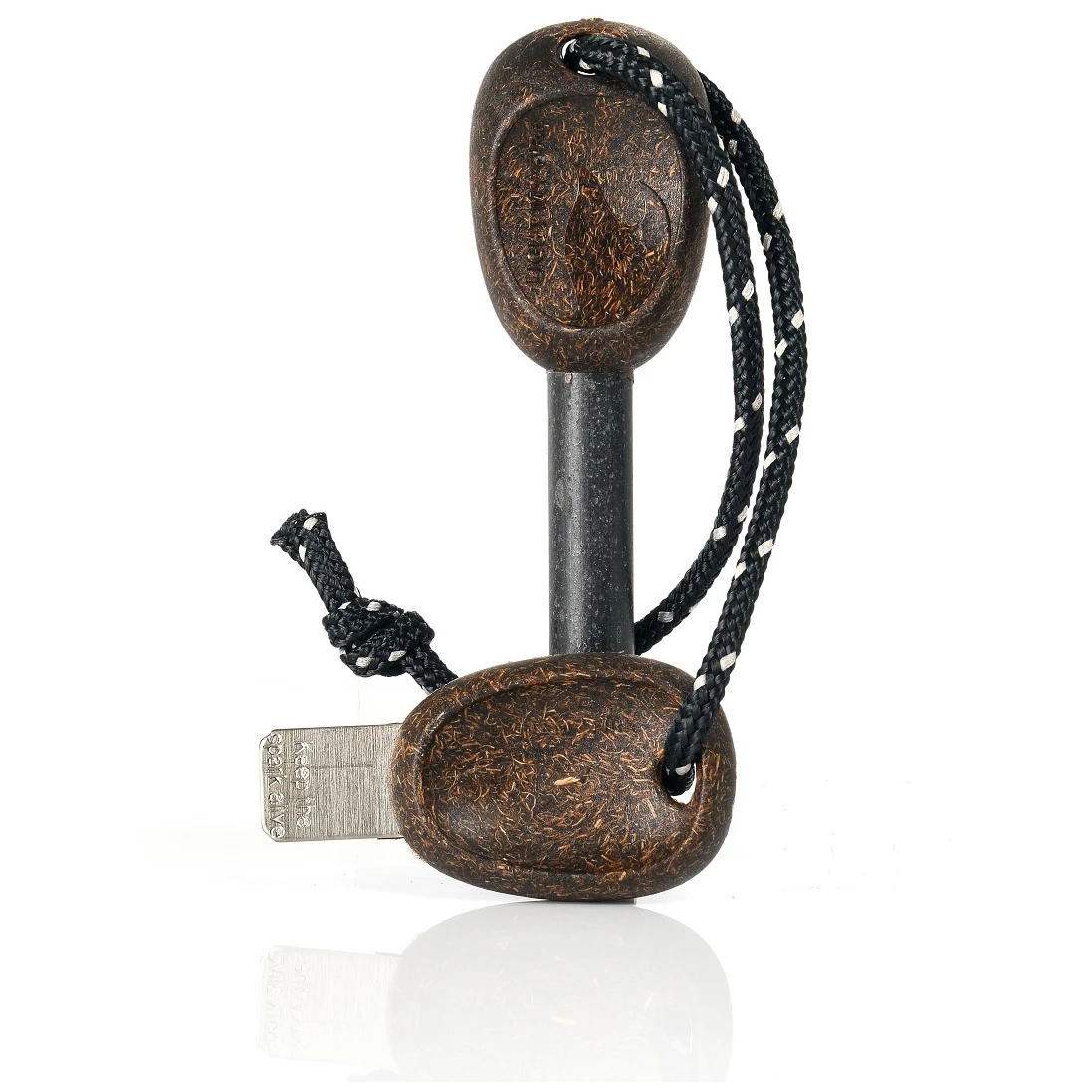 Der FireSteel BIO Army Feuerstein des Herstellers Light My Fire ist ein zuverlässiger Partner beim Feuermachen in der Natur, aber auch in Öfen, Kaminen oder Grills. Dieses Modell wurde ursprünglich für das schwedische Verteidigungsministerium entwickelt. Der Feuerstein besteht aus einer hochwertigen, langlebigen Magnesiumlegierung und hält 12.000 Zündungen stand. Der erzeugte Funke ist fast 3000 °C heiß und ermöglicht den Einsatz auch bei nassem und windigem Wetter in jeder Höhenlage. Alle Teile sind durch eine starke Nylonschnur verbunden. Alle Kunststoffkomponenten bestehen aus biomassebasierten Biokunststoffen und sind somit umweltfreundlich. Als Bonus verfügt der Feuerstein über eine eingebaute Notpfeife, mit der Sie Hilfe oder Ihren Hund rufen können.
