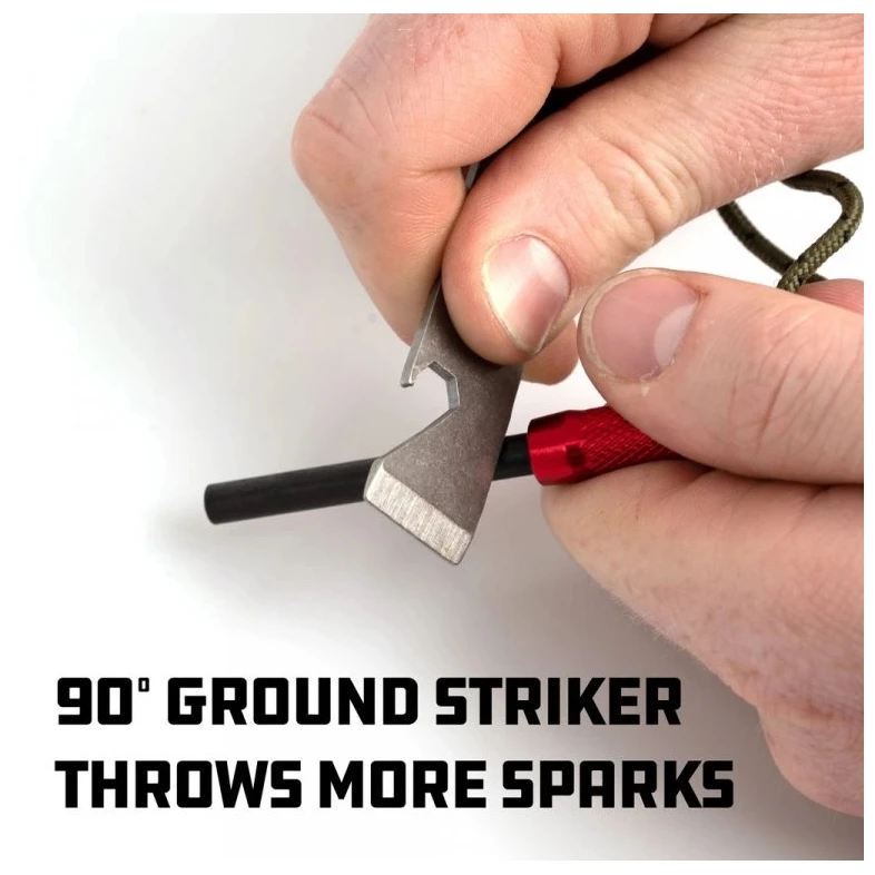 Funken vom Fire Striker UCO können im Notfall auch als Notsignal verwendet werden. Der Feuerstein und der Feuerstein selbst werden an einem Stück Mehrzweck- Fallschirmschnur mit einer Zugfestigkeit von bis zu 250 kg befestigt.