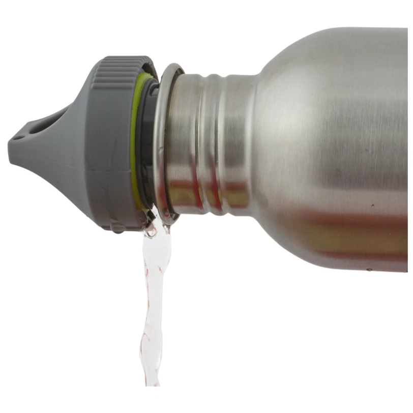 Im Lieferumfang der Flasche ist außerdem ein Verschluss mit Mundstück enthalten, wie man es von Fahrradflaschen kennt. Zu diesem Verschluss gehört auch eine Kappe, die das Mundstück vor mechanischer Beschädigung und Verschmutzung schützt. Kappe und Mundstück bestehen aus Polypropylen (BPA-frei). Die Dichtung besteht aus Silikon.