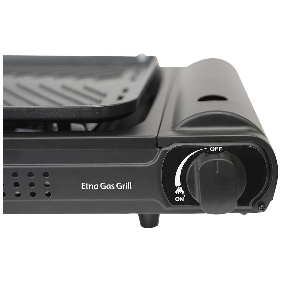 Gasgrill Etna Gas Grill vom dänischen Hersteller Outwell besticht durch seine leichte Aluminiumkonstruktion. Auf der Oberfläche der abnehmbaren Grillplatte befindet sich eine antihaftbeschichtete Keramikoberfläche, die leicht sauber zu halten ist.