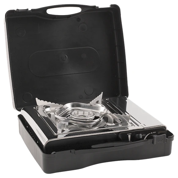 Der Brenner verfügt über eine Leistung von bis zu 2000 W, einen drehbaren Zink-Bedienknopf für seine stufenlose Regelung und Piezozündung. Im Inneren befindet sich ein eingebauter Platz für eine Butankartusche MSF-1A. Sicherheitssystem Gasguard verhindert unbeabsichtigte Gaslecks, falls die Flamme erlischt. Der Kocher lässt sich dank der robusten Tragetasche leicht transportieren.