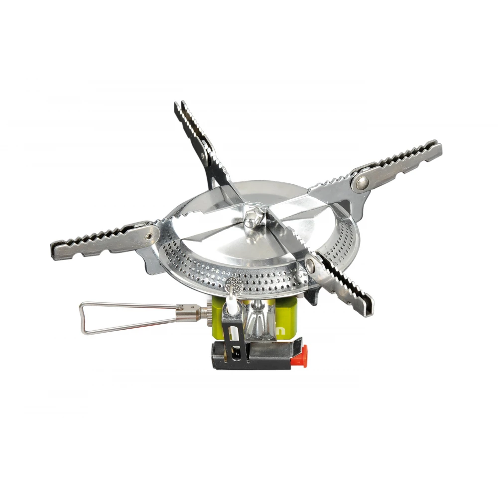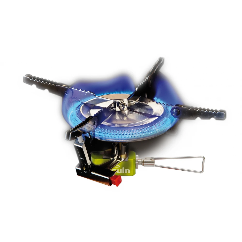 Stabiler Gaskocher Camper vom Outdoor-Hersteller Pinguin mit breitem Standfuß aus Edelstahl und Aluminium mit einem Gewicht von 165 g. Natürlich ist ein Piezozünder vorhanden.