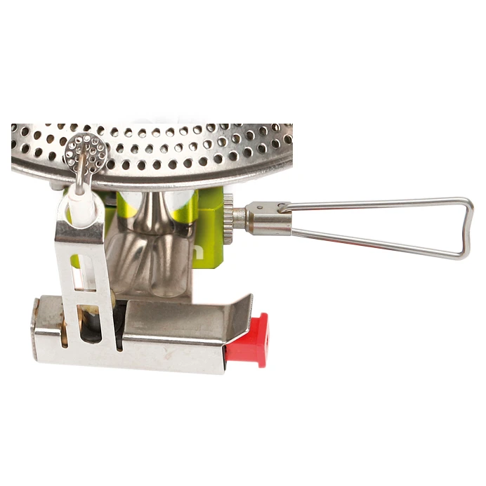 Durch drücken des Knopfes am Kocher entsteht ein Spannungsimpuls, und der Funke entzündet dann das freigesetzte Gas. Ein praktisches Hilfsmittel, dank dem Sie keine Streichhölzer oder ein Feuerzeug bei sich tragen müssen.