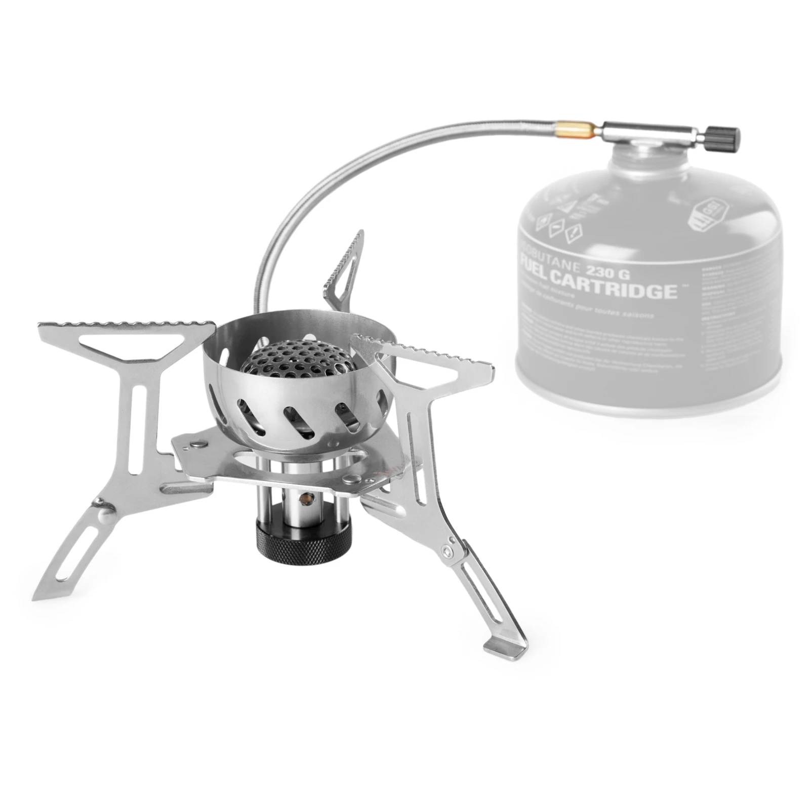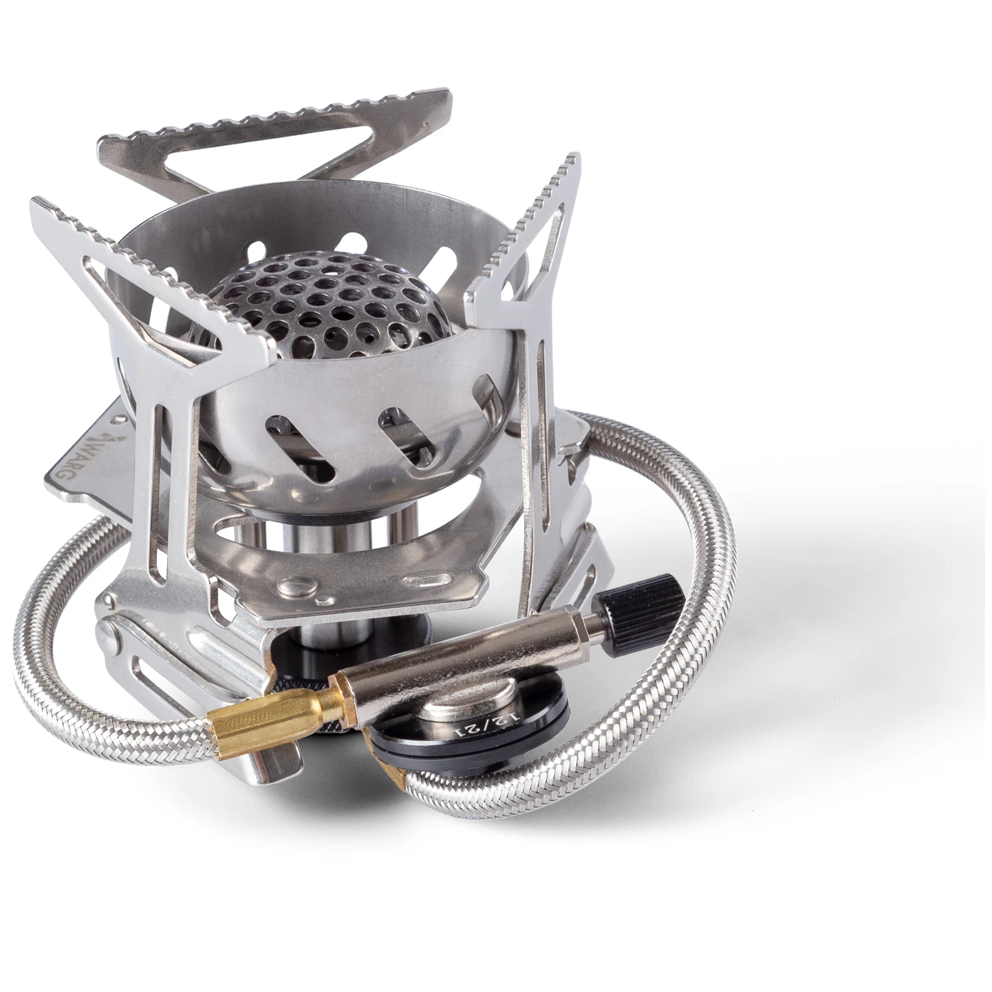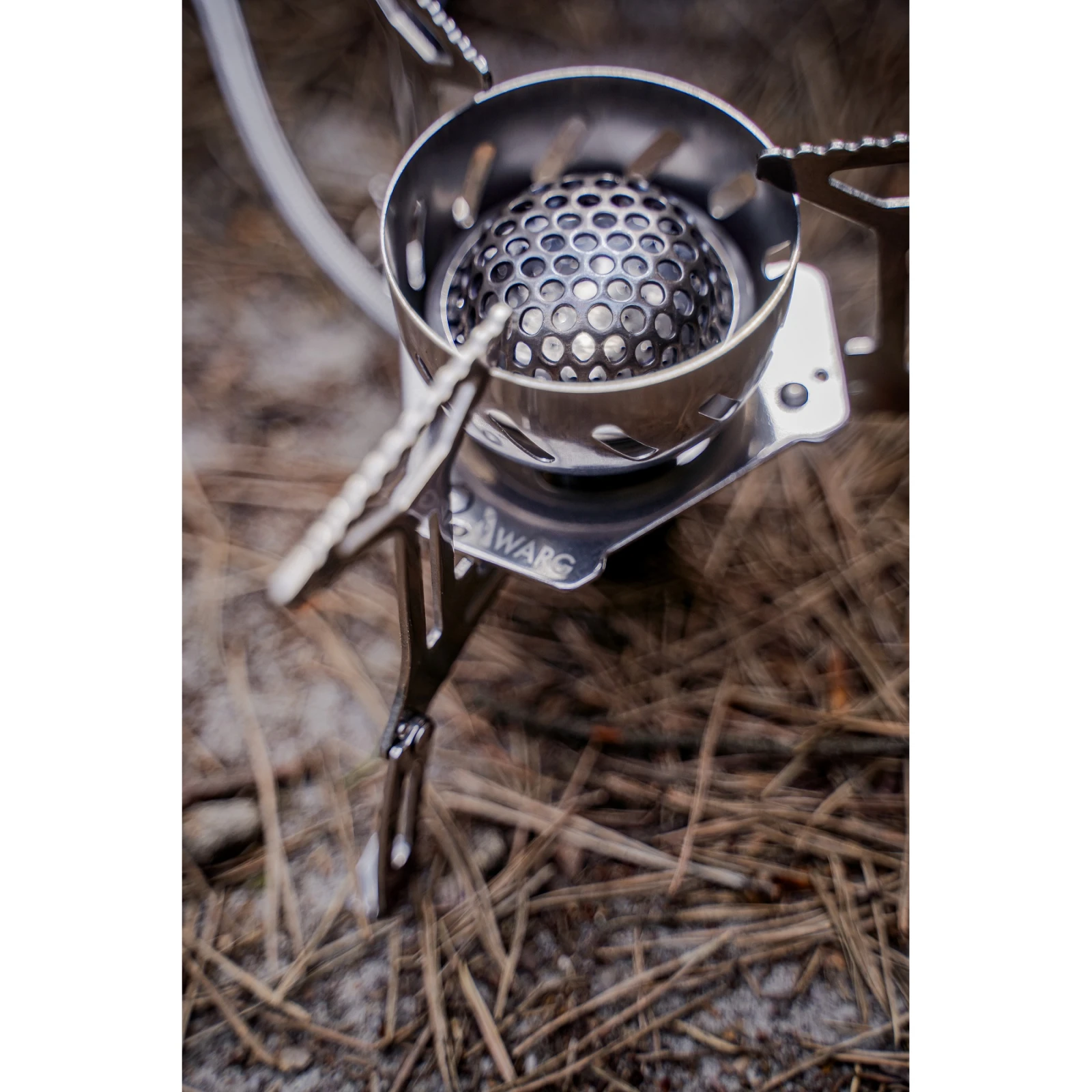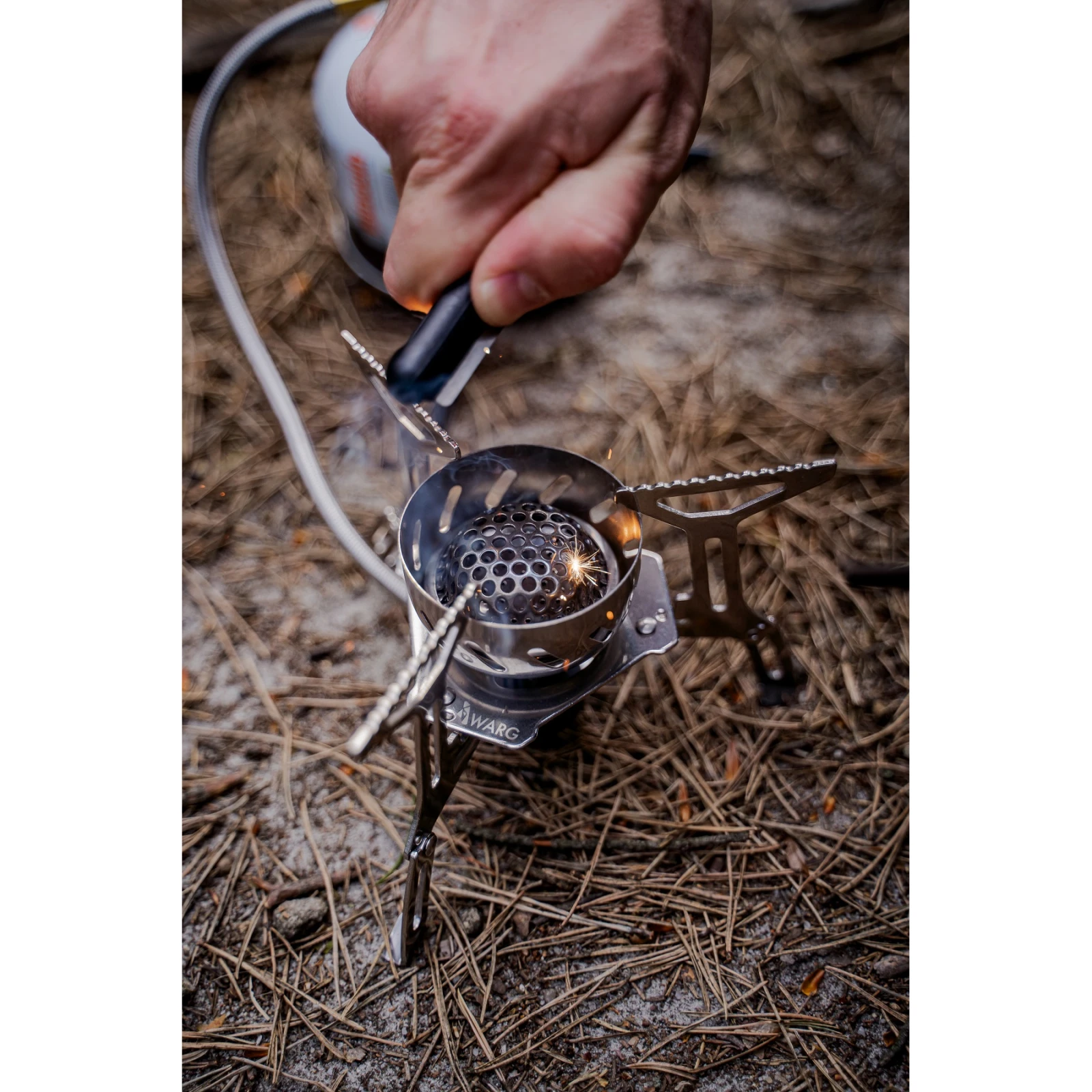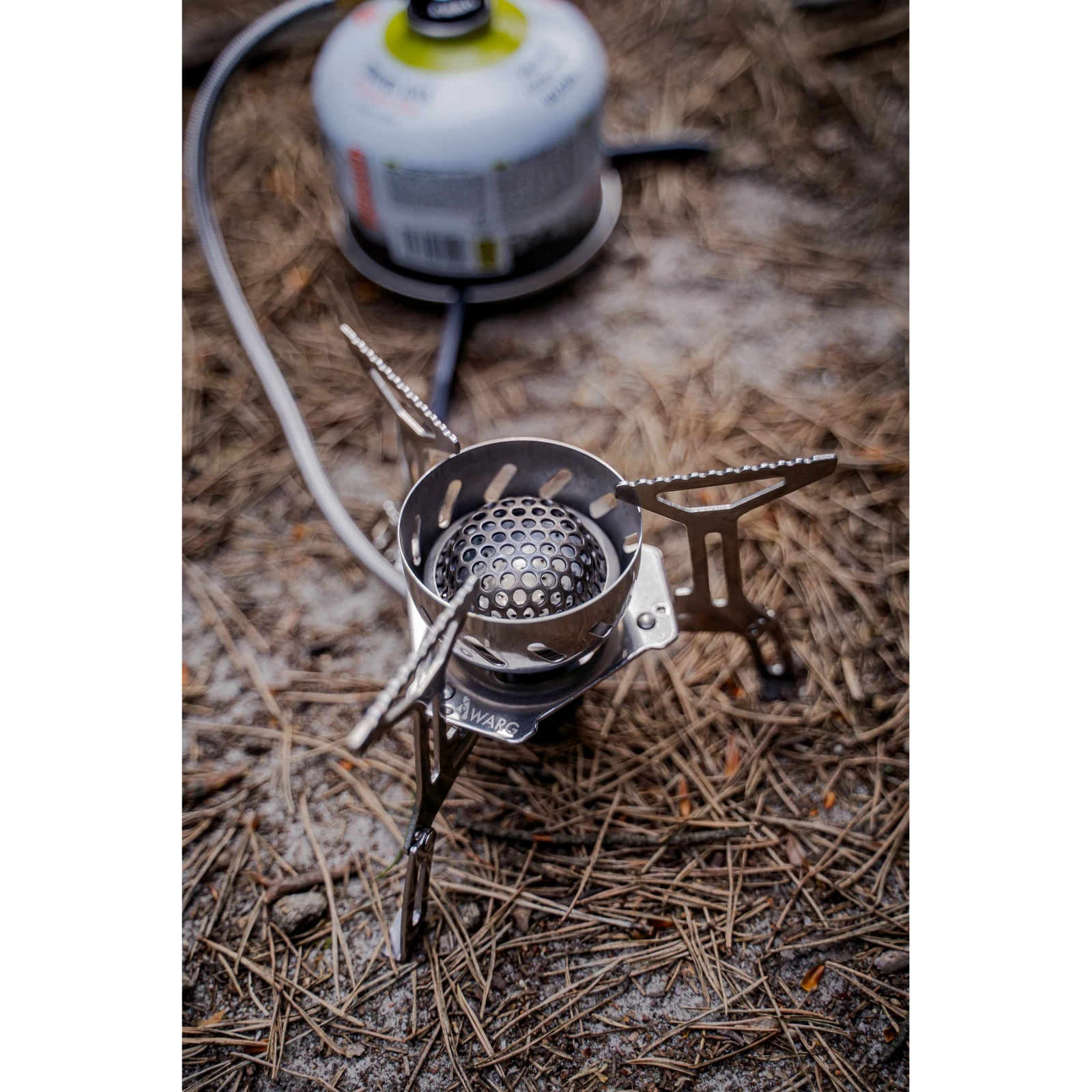 Gaskocher Warg Glacier ist dank seiner robusten Konstruktion und dem großen Durchmesser für größere Gefäße geeignet, wenn Sie sicher sein wollen, dass Sie den Topf nicht umkippen. Der Kocher ist über einen Schlauch mit der Kartusche verbunden, wodurch die Kartusche bis zum letzten Rest genutzt werden kann. Durch das Klappdesign lässt sich der Ofen auf kompakte Maße zusammenfalten.