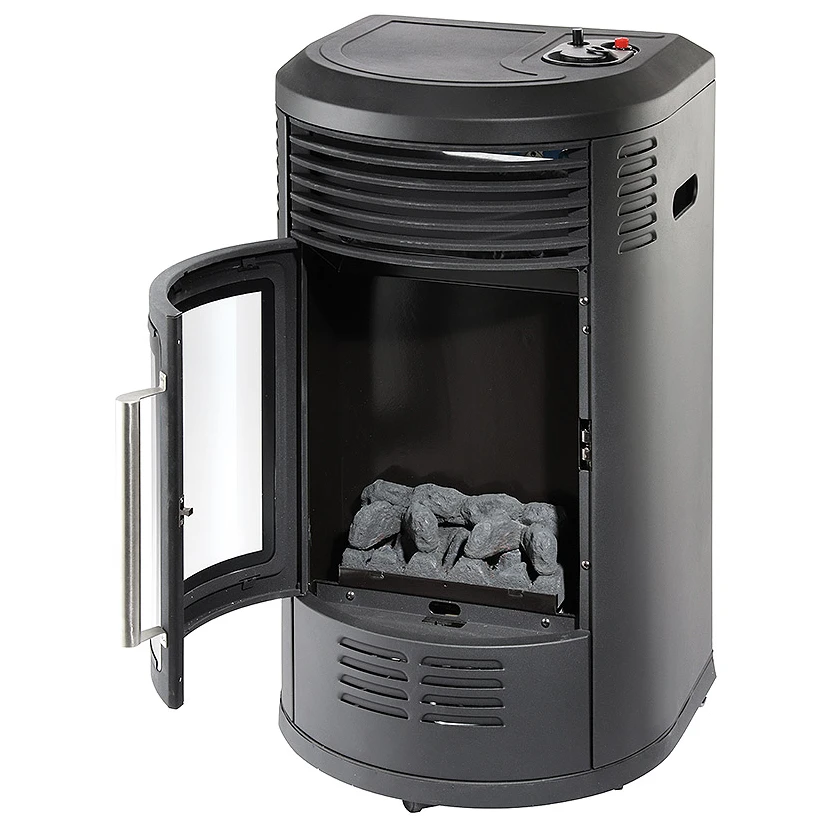 Propan-Butan- Kocher Meva Relax Deluxe zeichnen sich durch ein außergewöhnliches Design aus. Durch die Quarzglastür ist die Flamme sichtbar und imitiert so einen klassischen Kaminofen. Elektrische Piezozündung mit AAA-Batterie, 6 Leistungsreglerpositionen. Thermostat mit Temperatureinstellung. Zubehör zum Anschluss an 5 kg und 10 kg Flaschen ist im Lieferumfang enthalten.