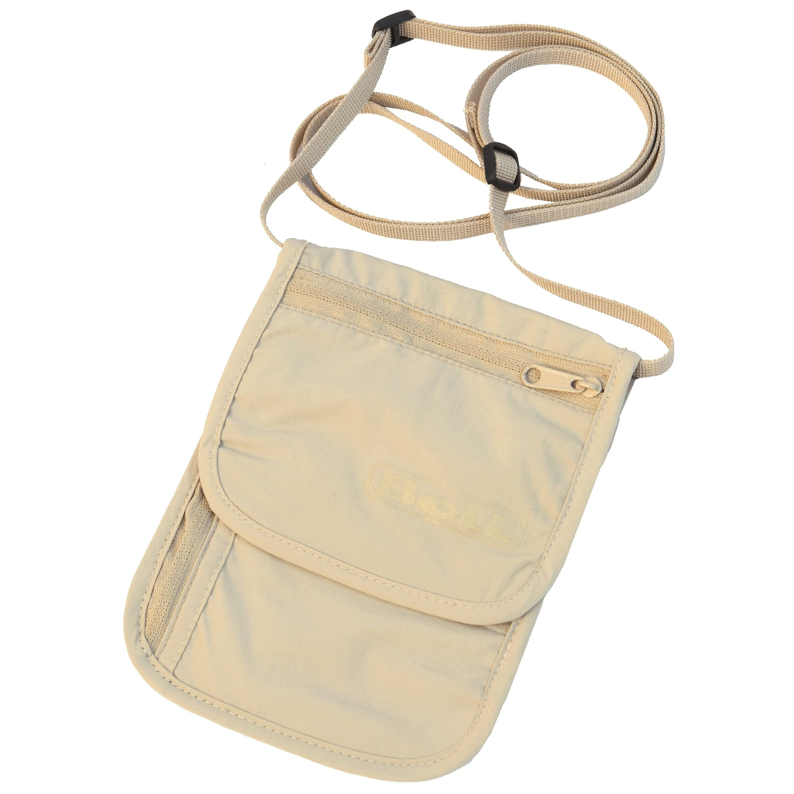 Boll Die Security Pouch ist eine ideale Reisetasche um den Hals, die unter der Unterwäsche getragen wird und über mehrere Taschen verfügt. Es eignet sich zum Verstecken von Geld, Reisedokumenten und Flugtickets. Dank der neutralen Farbe ist es auch unter heller Kleidung nicht sichtbar. Die Tasche besteht aus einem Gemisch aus feinem Polyester und Baumwolle.