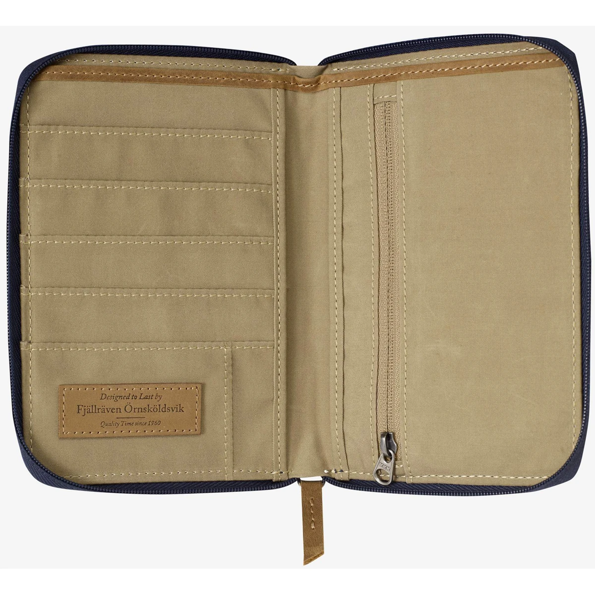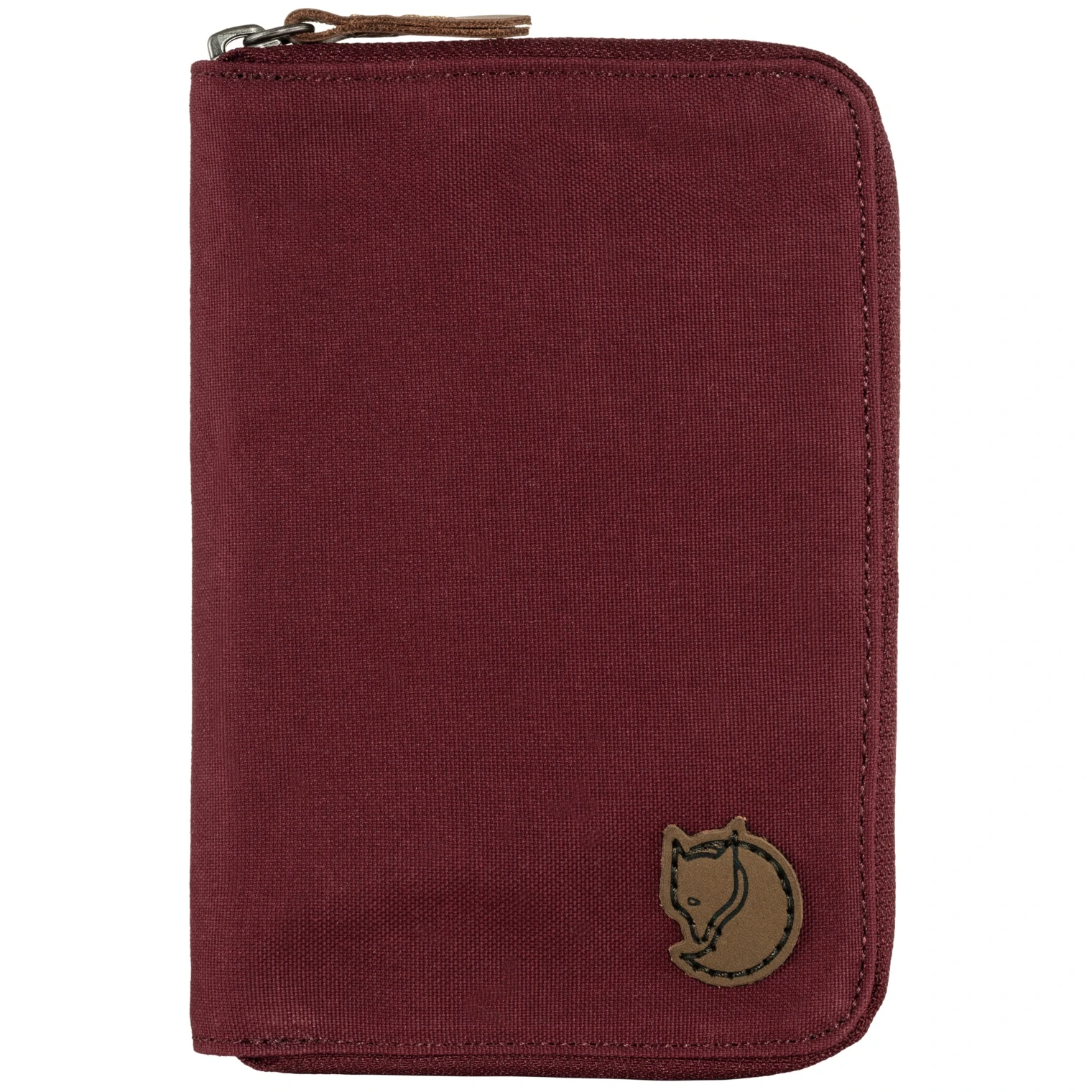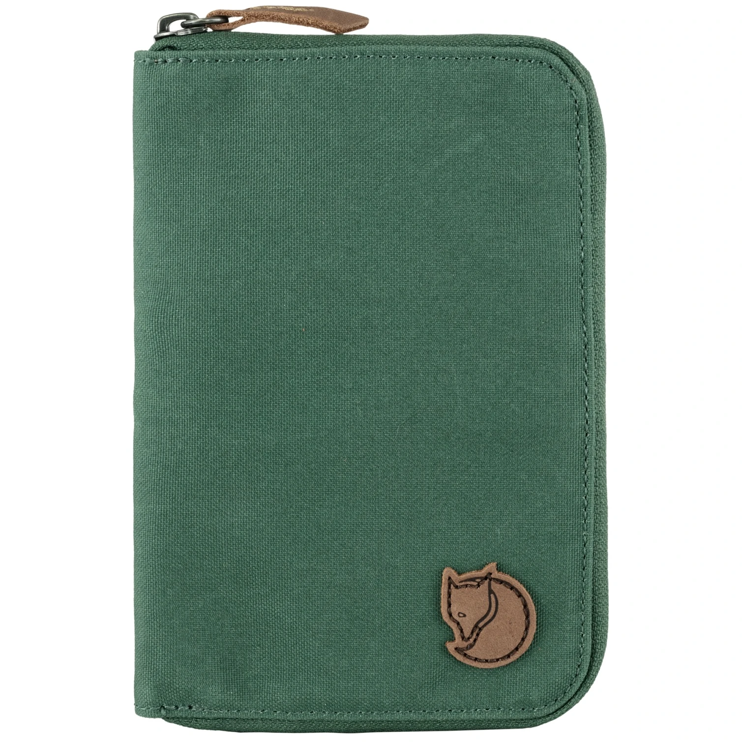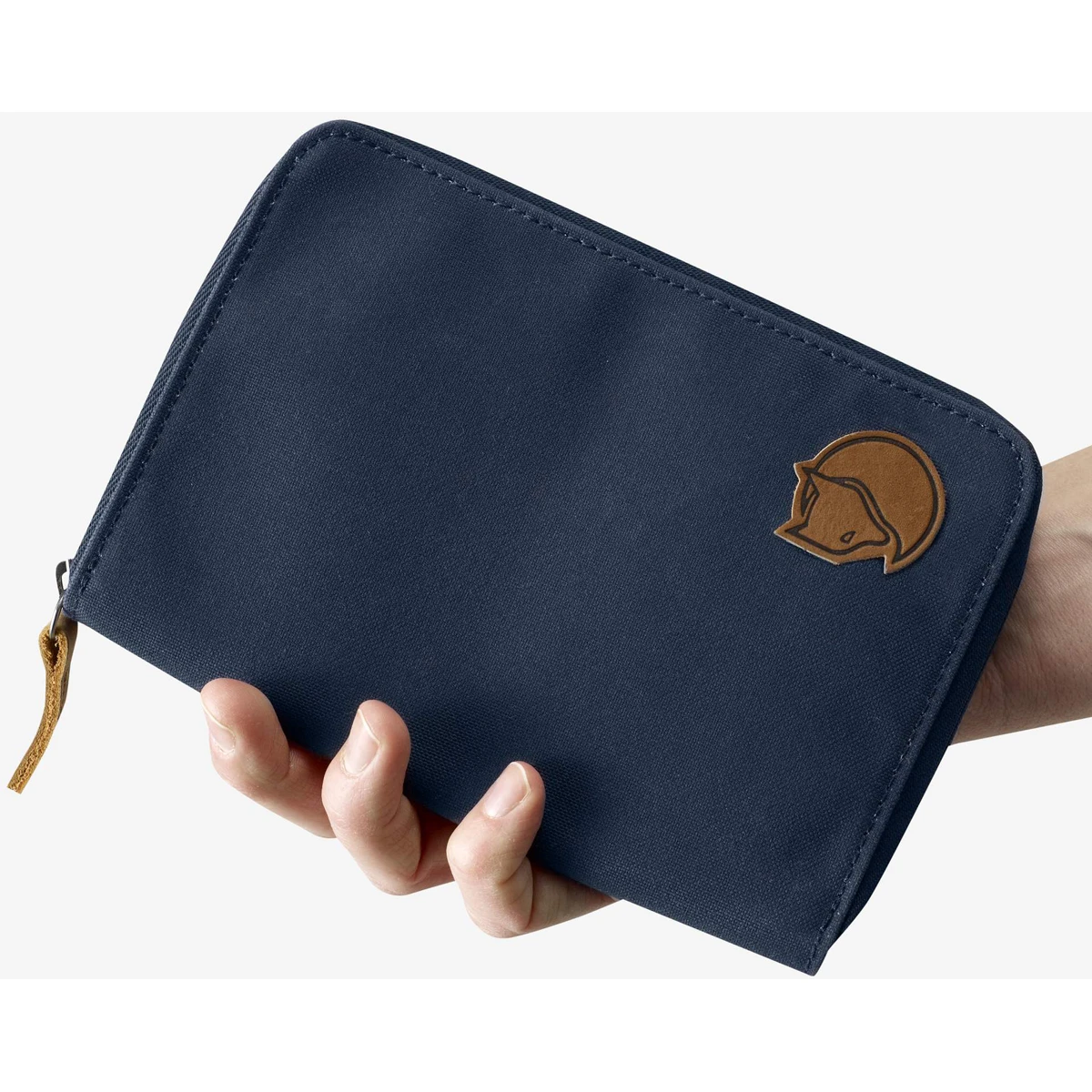 Geldbörse Das Passport Wallet der schwedischen Marke Fjällräven ist eine praktische Ausweishülle aus strapazierfähigem G-1000 Heavy Duty Material, das aus recyceltem Polyester und Baumwolle besteht. Die Geldbörse lässt sich mit einem Reißverschluss verschließen, sodass Sie keine Angst haben müssen, dass der Inhalt in Ihren Rucksack oder auf den Boden fällt. Die übersichtliche Innenaufteilung bietet ein Münzfach mit Reißverschluss und mehrere Steckfächer für Geldscheine, Kreditkarten, Dokumente und Belege sowie ein Reisepassfach.
