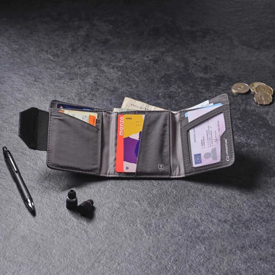 Diese klassische RFID-Geldbörse von Lifeventure ist elegant und geräumig und aus wasserabweisendem Stoff gefertigt. Es verfügt über 2 große Geldscheinfächer, 2 Münzfächer mit Reißverschluss, 4 Geheimfächer und 6 Kartenfächer. Dieses großartige Allroundprodukt schützt Inhalte vor RFID-Lesegeräten (Radio Frequency Identification), indem es die Informationsübertragung durch das Nickel- und Kupferpolyestergewebe stoppt und so das Risiko eines Identitätsdiebstahls verringert. Die Brieftasche verfügt außerdem über ein externes Reißverschlussfach ohne RFID-Schutz, damit Sie bei Bedarf problemlos kontaktlos bezahlen oder Reisekarten mitnehmen können.
