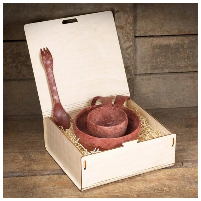 Das Geschenkset Kupilka Premium S bereitet allen Freunden, die gerne in der Natur unterwegs sind, große Freude. Es besteht aus thermoplastischem Material.