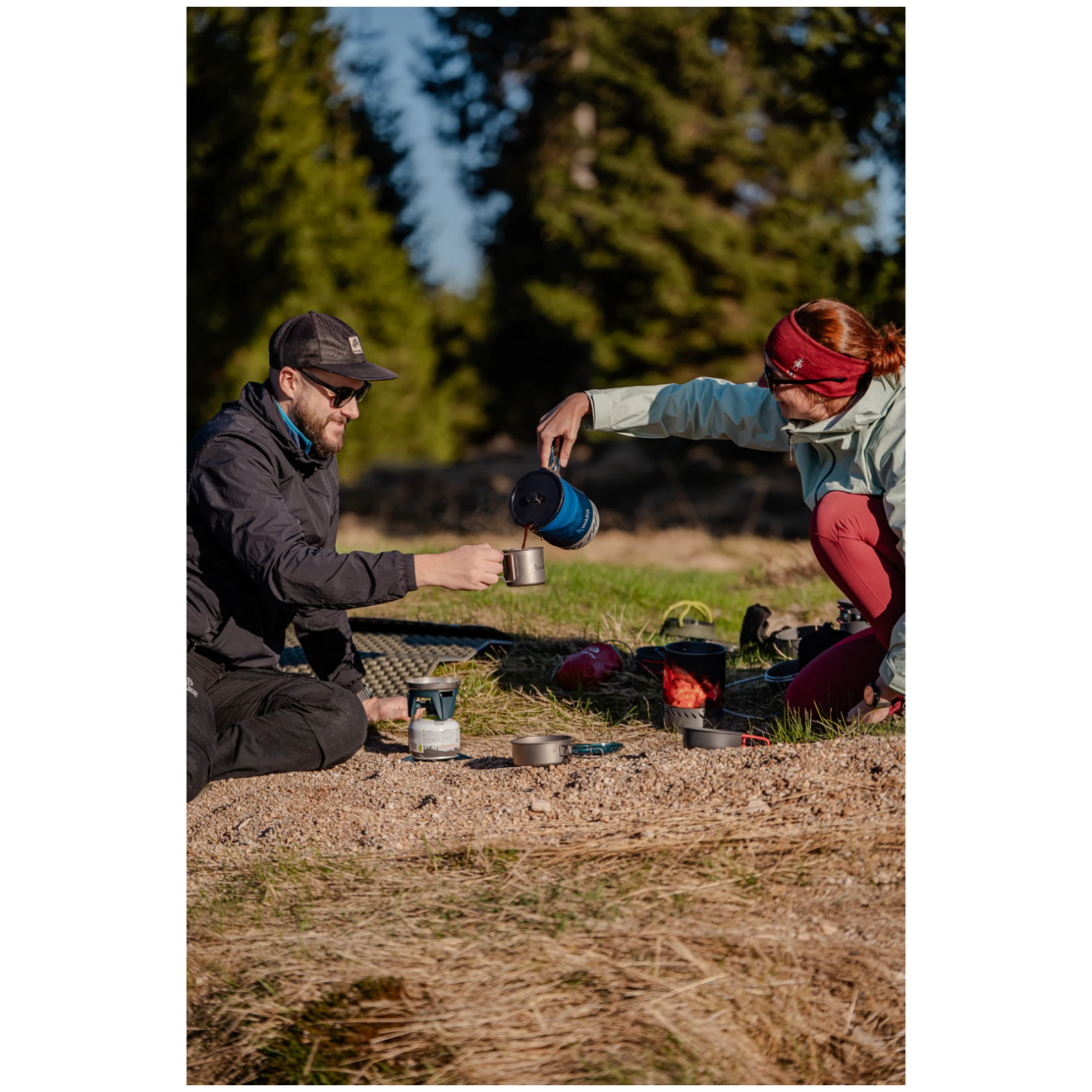 Der ultraleichte Titanbecher mit einem Volumen von 350 ml ist die ideale Wahl für alle Outdoor-Enthusiasten. Er eignet sich hervorragend für Kaffee, Tee, aber Sie können darin auch Wasser für die Zubereitung von dehydrierten und gefriergetrockneten Speisen erhitzen.