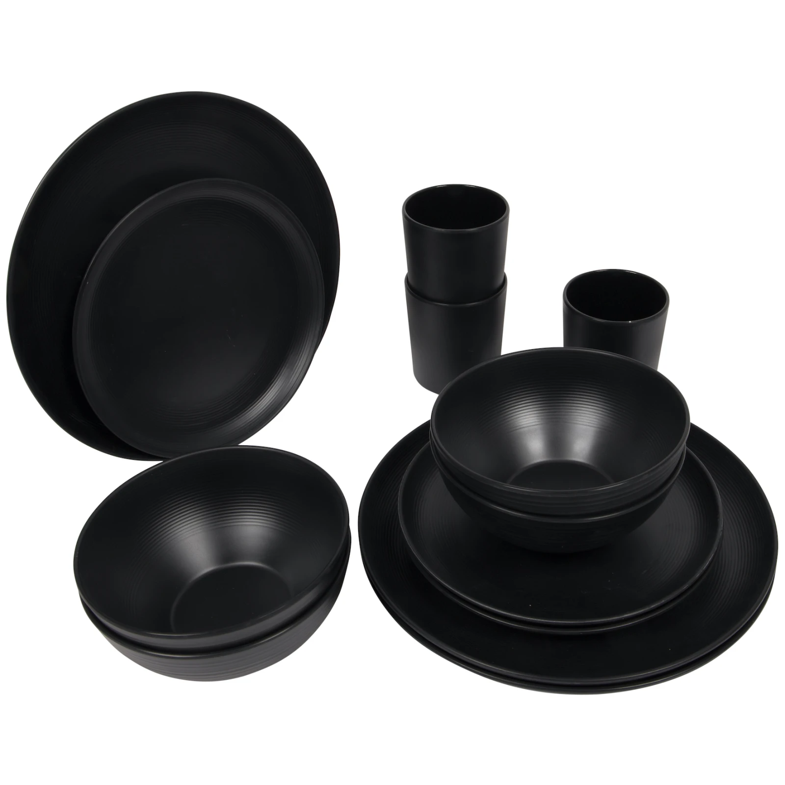 Trendy 16-teiliges Orville Geschirr-Set der Marke Bo-Camp aus 100% Melamin. Melamingeschirr ist praktisch unzerbrechlich, sehr leicht, kratzfest und spülmaschinenfest. Geeignet für 4 Personen und besteht aus 4 Tellern, 4 Frühstückstellern, 4 Schüsseln, 4 Bechern. Ideal zum Mitnehmen zum Camping oder in den Garten.