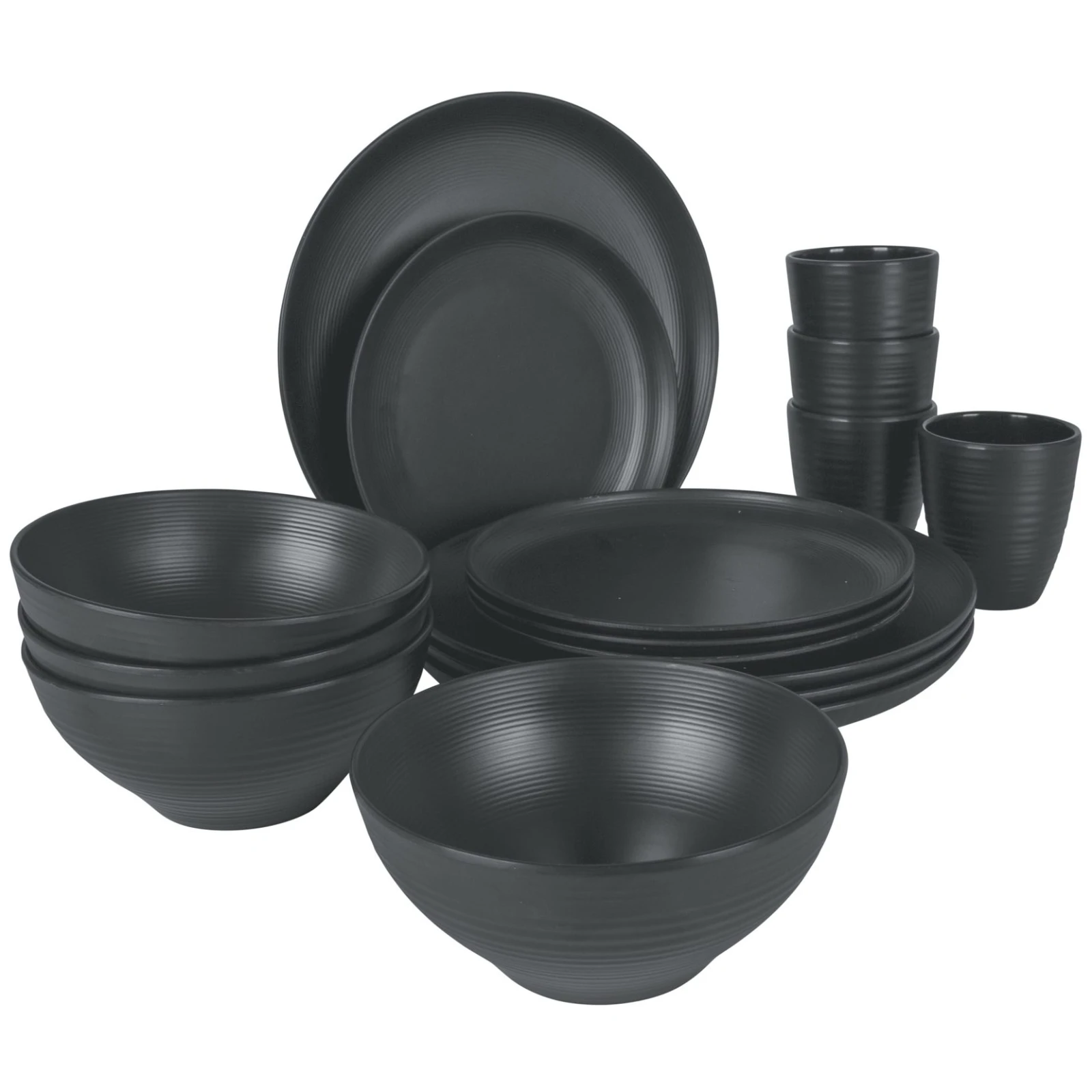 Trendiges 16-teiliges Orville Geschirr-Set Bo-Camp aus 100% Melamin. Melamingeschirr ist praktisch unzerbrechlich, sehr leicht, kratzfest und spülmaschinenfest.