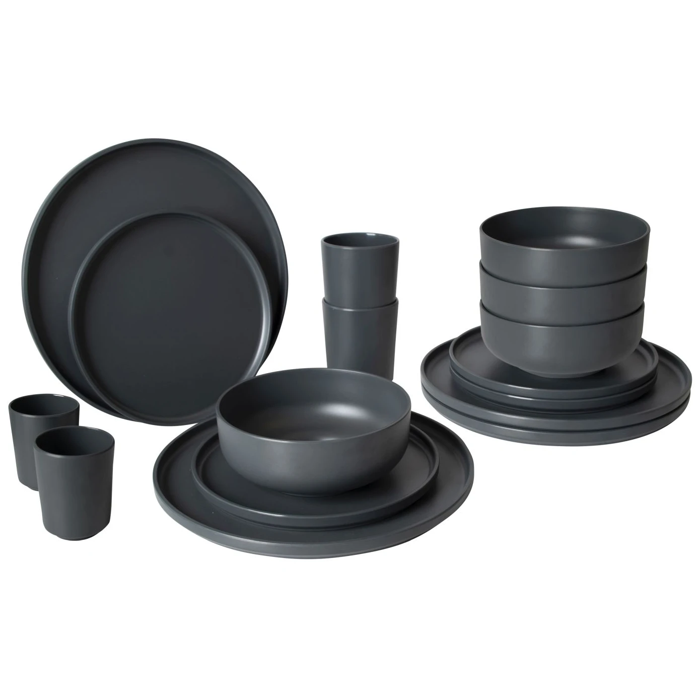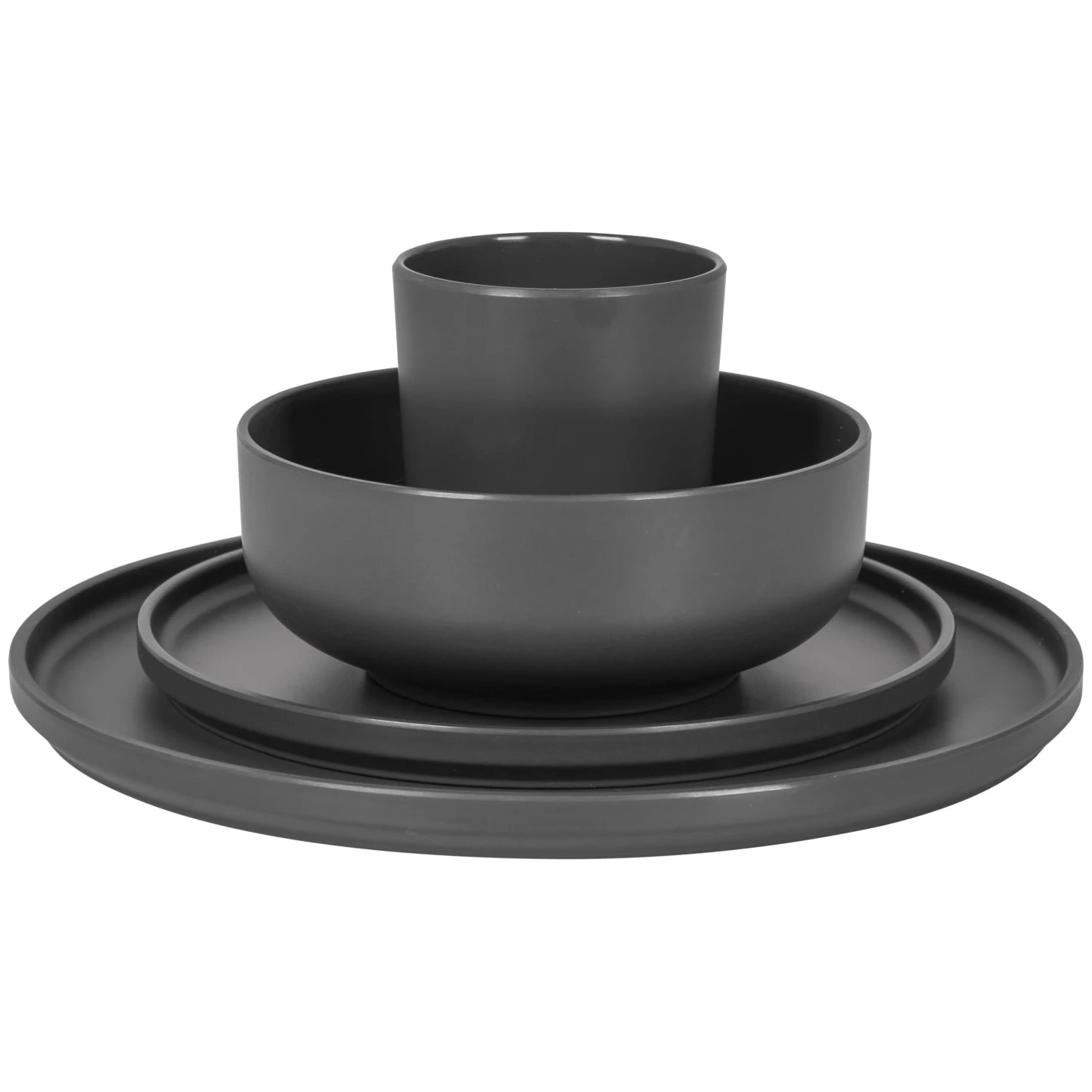 Modernes 16-teiliges Patom Geschirr-Set Bo-Camp mit senkrechtem Rand und aus 100% Melamin. Melamingeschirr ist praktisch unzerbrechlich, sehr leicht, kratzfest und spülmaschinenfest.