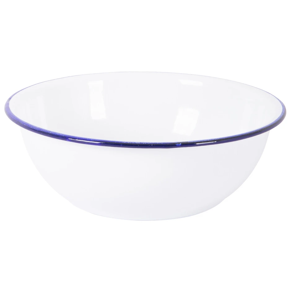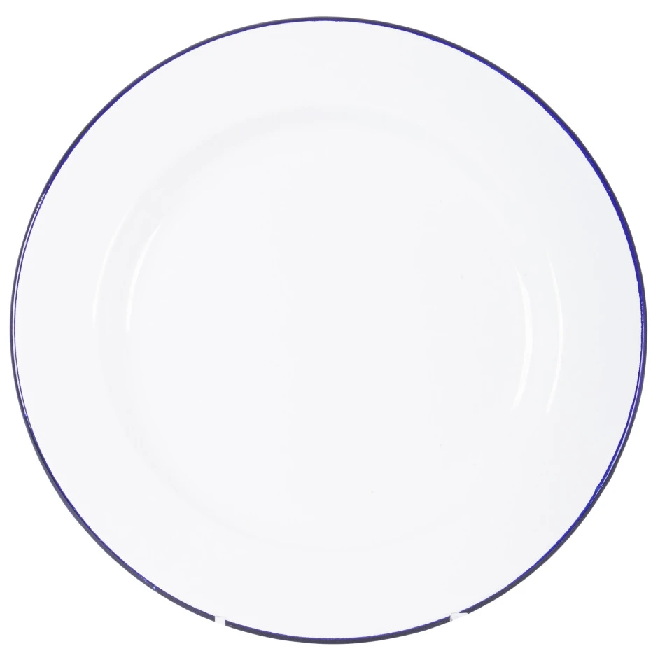 Gönnen Sie sich ein gemütliches Essen auch unterwegs! Das Emaille-Geschirrset Bo-Camp ist ideal für Camping, Picknick und Abendessen im Garten. Auch optisch macht es durch die edle blaue Umrandung einiges her.