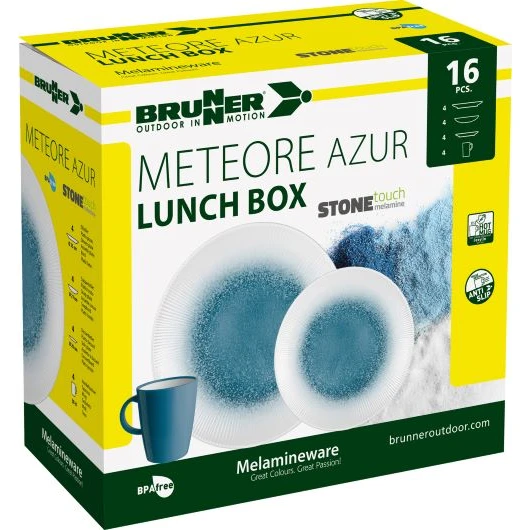 Das perfekte Geschirrset Brunner Meteore Lunchbox für das Mittagessen mit Familie oder Freunden. Das Set beinhaltet 16 Teile höchster Qualität.