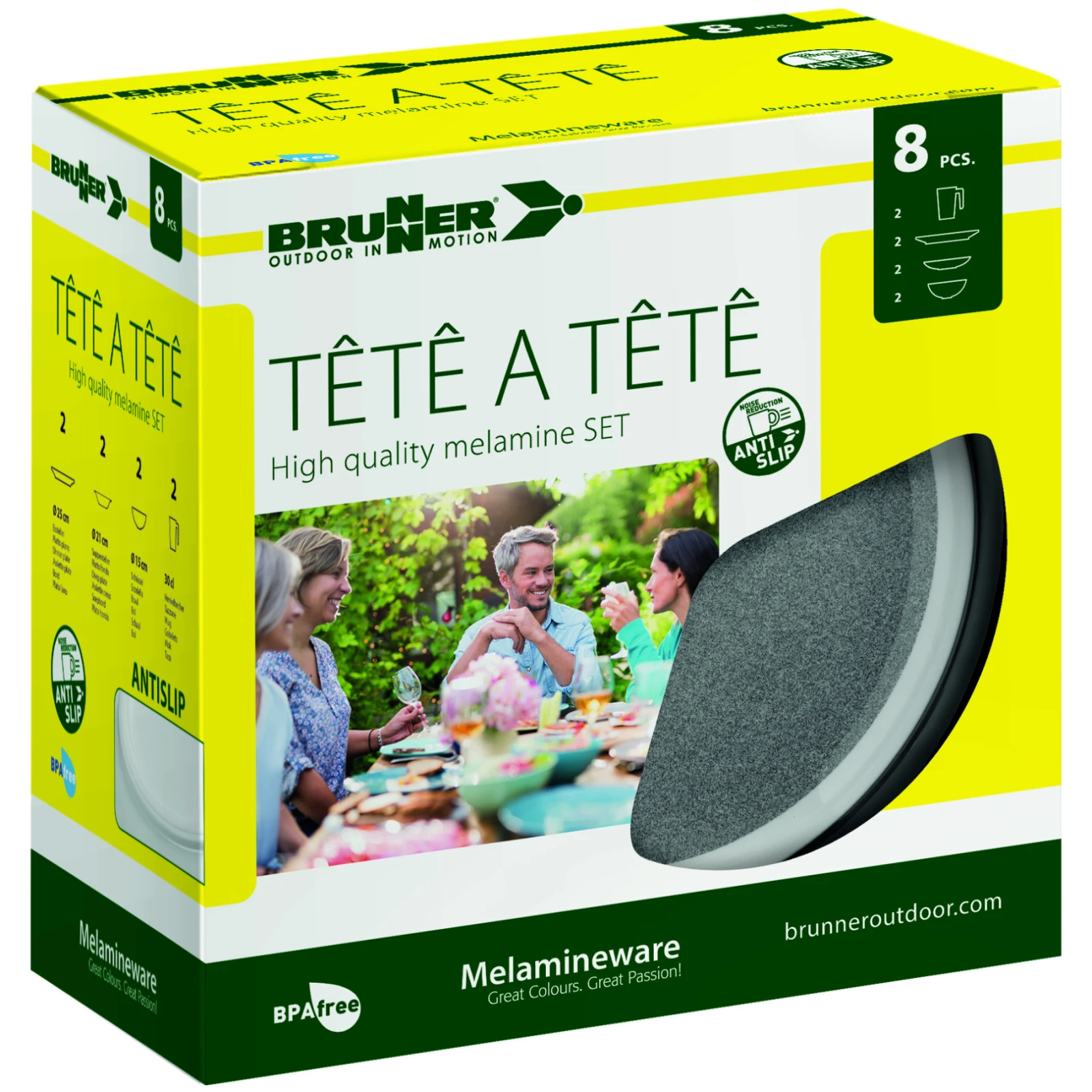Das Granyte Tête-à-Tête-Set ist ein elegantes Melamin-Geschirrset für zwei Personen. Das leichte und langlebige Design mit rutschfester Oberfläche ist ideal für Camping, Reisen und Mahlzeiten im Freien.