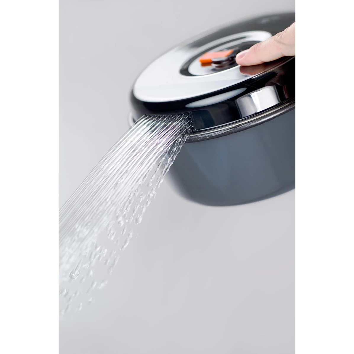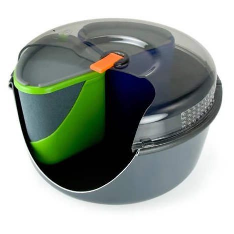 Das Set ist außerdem mit einer Pfanne ausgestattet, die als Deckel verwendet werden kann. Dazu gibt es noch einen separaten Lochdeckel aus BPA-freiem Kunststoff, der den Dampf problemlos aus dem Topf entweichen lässt und zugleich als Sieb dienen kann, beispielsweise zum Abgießen von Nudelwasser. Ergänzt wird das Ganze durch einen klappbaren und abnehmbaren Griff, der Ihnen das Kochen zweifellos noch mehr Freude bereiten wird. Das gesamte Set lässt sich in einem Koffer verstauen, der auch als Spüle genutzt werden kann.