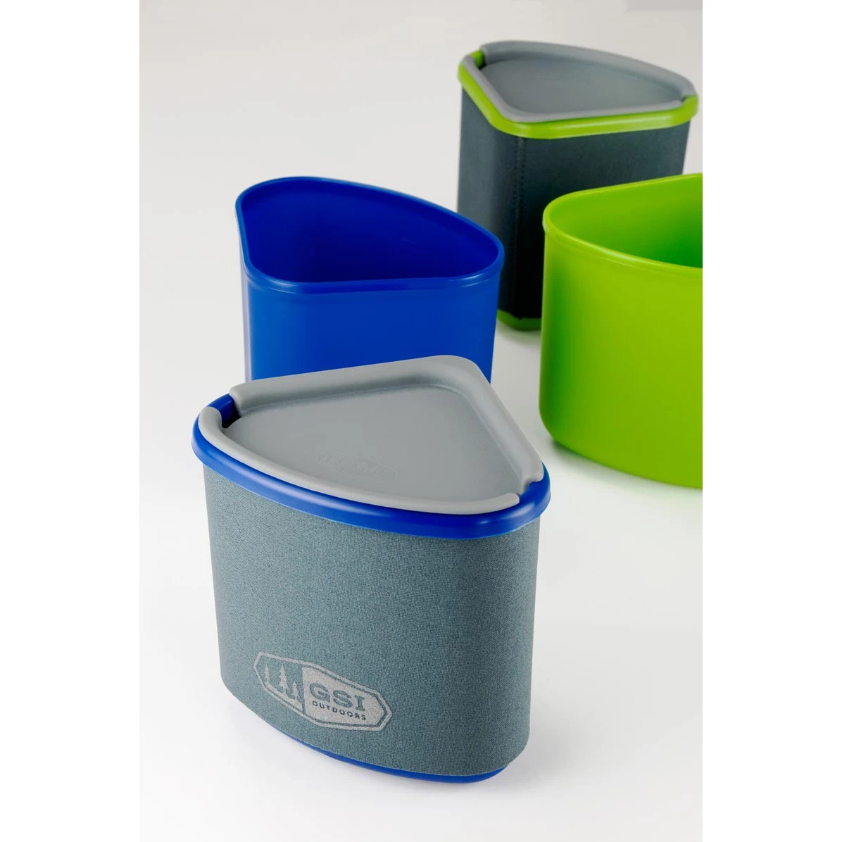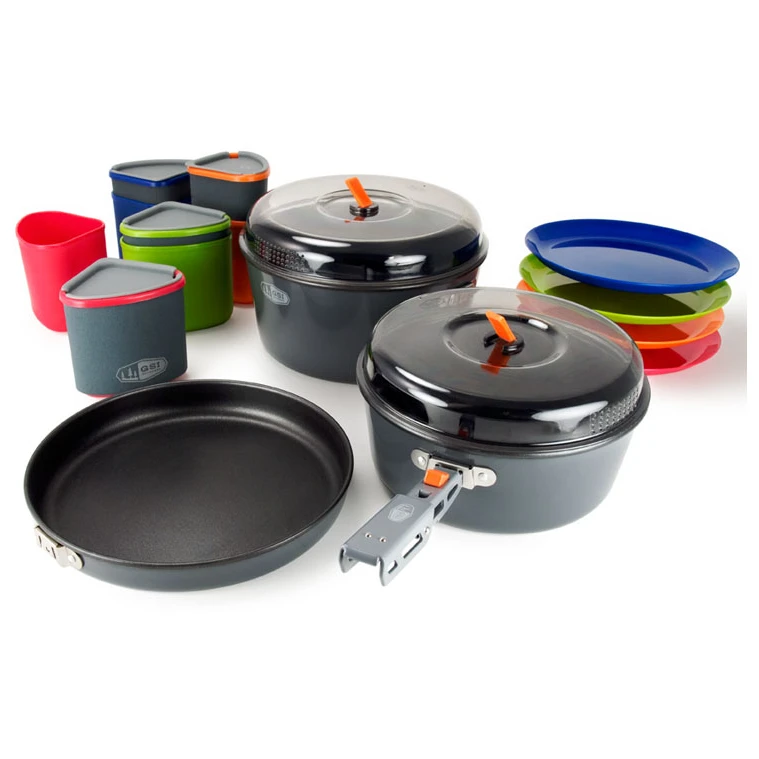 Das Bugaboo Camper Kochgeschirr-Set des Herstellers GSI Outdoors ist so konzipiert, dass das im Set enthaltene Kochgeschirr für zwei oder vier Personenkombiniert werden kann. Dank des nForm Crossover-Speichersystems bleibt die Größe jedoch weiterhin kompakt. Den Kern des gesamten Sets bilden zwei Töpfe mit 2 und 3 Litern Fassungsvermögen, komplett mit Deckel. Die Töpfe und Deckel basieren auf der Bugaboo-Reihe. In den Topf passt ein Set aus vier Thermosbechern und Schüsseln, die aus Kunststoff der Firma GSI unter dem Namen Infinityhergestellt werden. Die Becher sind zusätzlich mit einer Neopren-Wärmeisolierhülle und einer Trinktülle ausgestattet.