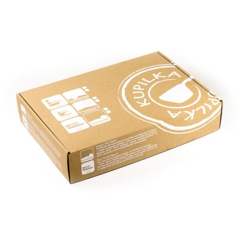 Kupilka Produkte sind recycelbar. Am Ende der Lebensdauer eines Produkts kann es wiederaufbereitet, geschliffen und Teil eines neuen Produkts werden. Alle Verpackungen und Anhänger Kupilka bestehen aus Recyclingkarton.