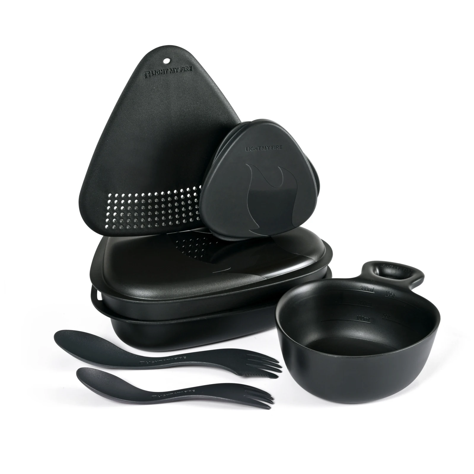 Das Outdoor MealKit 2.0 Geschirr Light My Fire zeichnet sich durch hochwertige Materialien und eine hohe Langlebigkeit aus. Sie können das gesamte Set zu einem kompakten Paket zusammenfalten. Es ist für die Mikrowelle und die Spülmaschine geeignet.