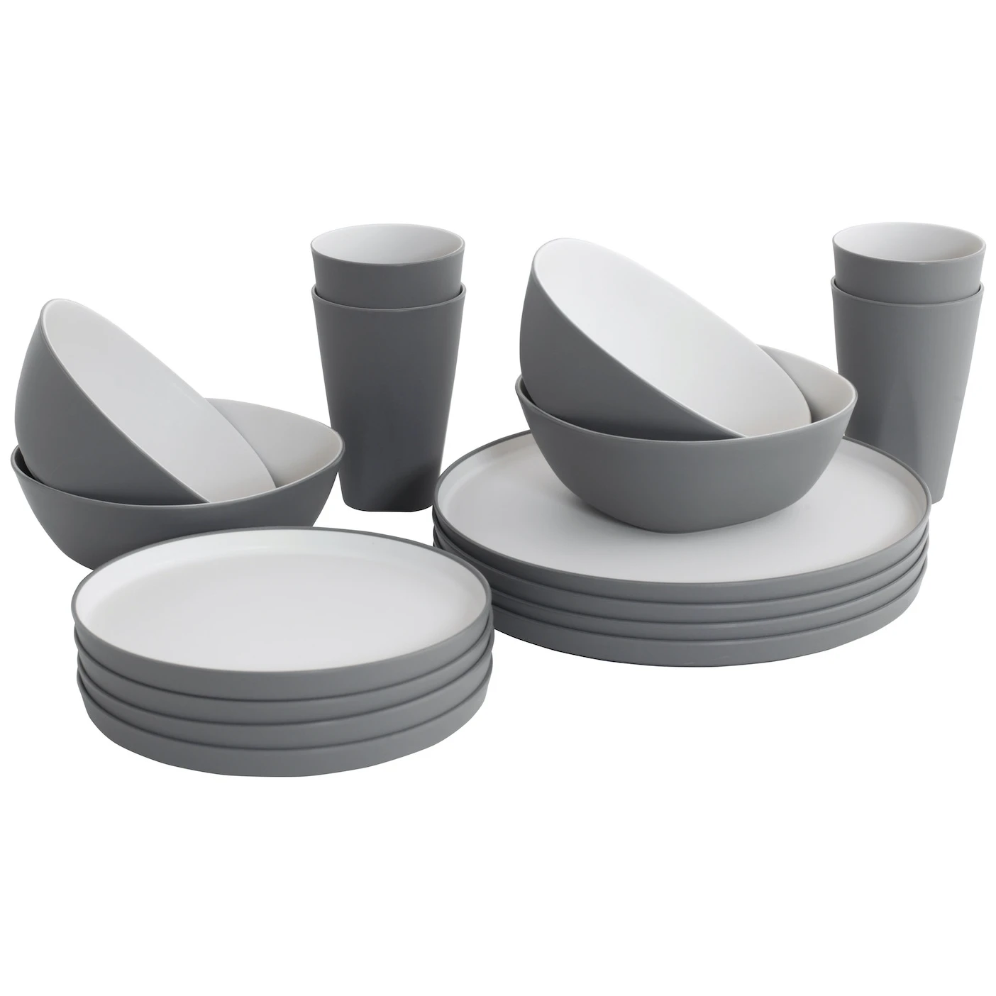 Das Gala 4-Personen-Geschirrset der Marke Outwell bietet Platz für 4 Personen. Das Set beinhaltet 4 Schüsseln, 4 Teller, 4 Dessertteller und 4 Gläser. Das Geschirr besteht aus einem sehr praktischen und langlebigen Material – Polypropylen, das sich ideal zum Camping eignet. Es verträgt Kälte und Hitze gleichermaßen, ist unempfindlich gegen Beschädigungen und lässt sich leicht reinigen. Sie können das Geschirr auch in die Spülmaschine und die Mikrowelle stellen.