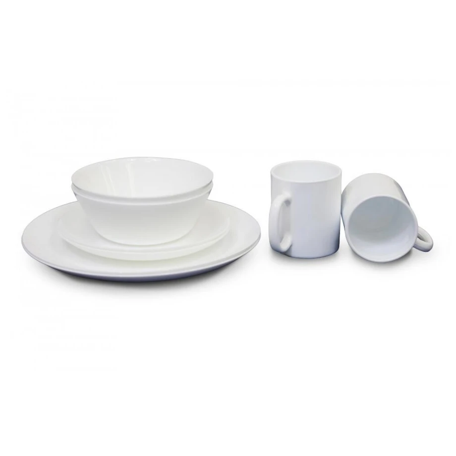 8-teiliges Esszimmerset Vango Opal 8-teiliges Esszimmerset aus gehärtetem Glas. Das Set besteht aus 2 Speisetellern, 2 Beilagentellern, 2 Schüsseln und 2 Bechern mit einem Fassungsvermögen von 320ml.