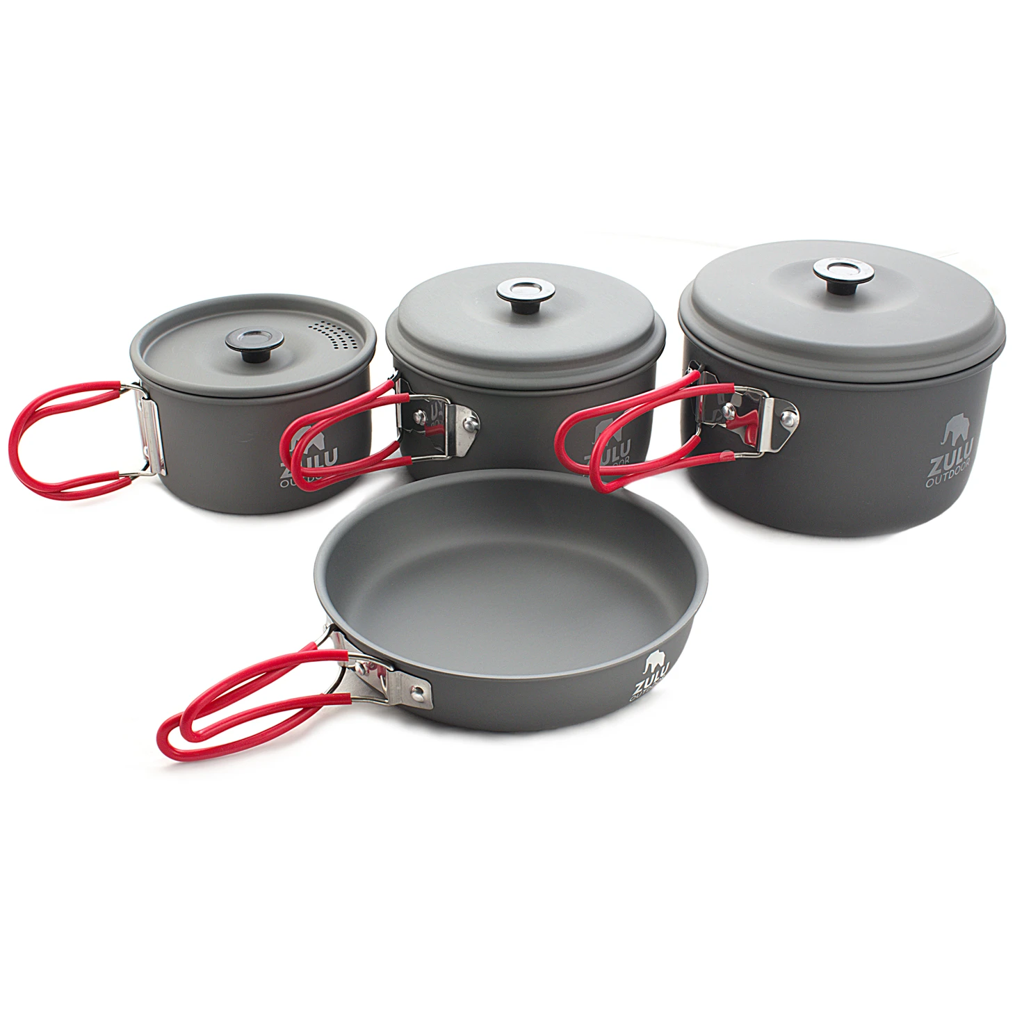 Das Grus Kochgeschirr-Set Zulu beinhaltet drei Töpfe mit Deckel und eine praktische Bratpfanne. Im Lieferumfang ist außerdem eine Transporttasche enthalten. Dies ist das ideale Set für einen Familienurlaub.