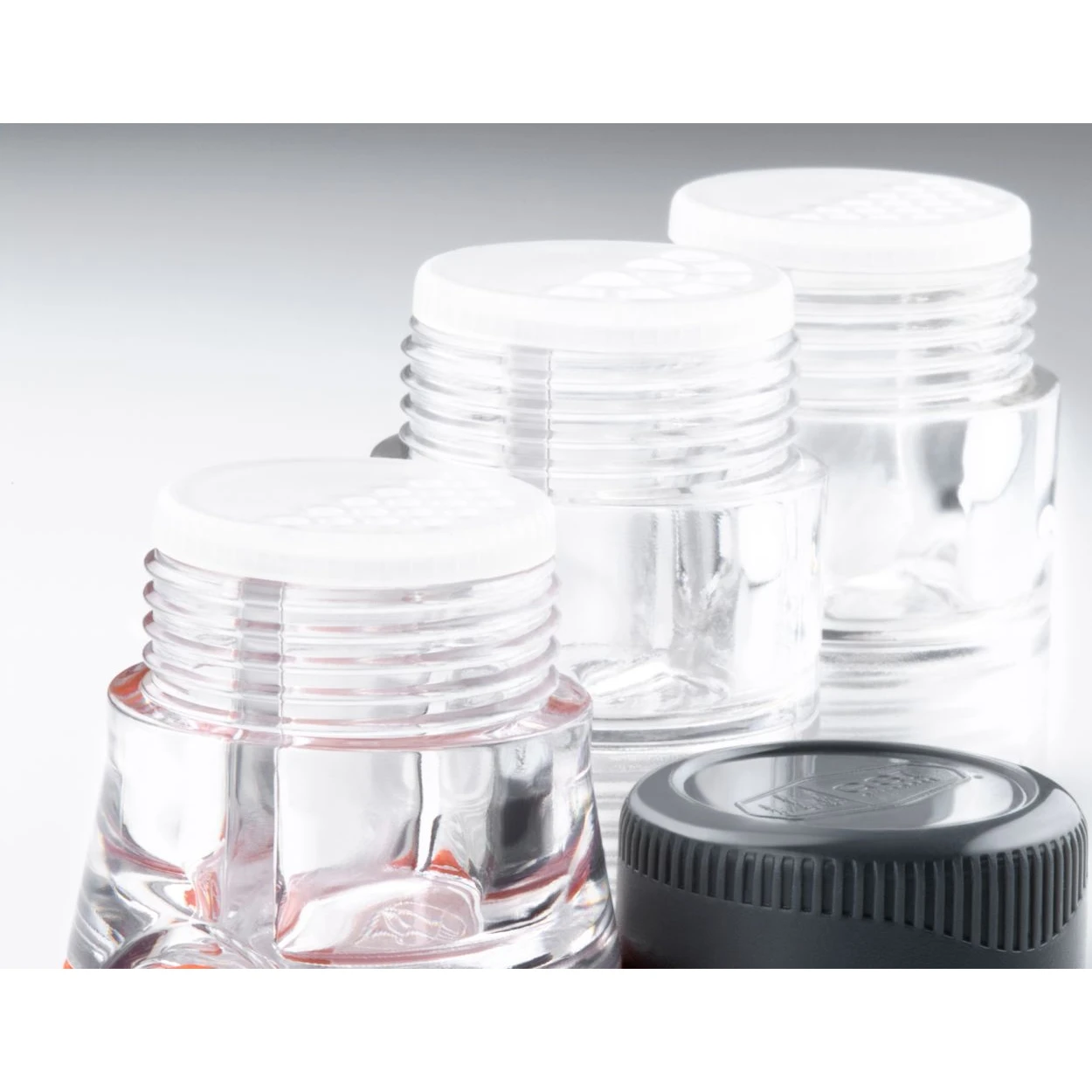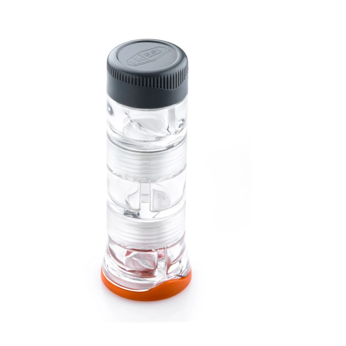 Das neue, einzigartige, ultraleichte und faltbare Spice Missile Gewürzregal von GSI Outdoors wird alle zufriedenstellen, die minimalen Platz und maximale Funktionalität suchen. Die Wurzeln lassen sich einfach ineinander schrauben. Jedes Gewürzglas ist zudem quer in zwei Mikrodosen unterteilt, so dass Sie, wenn Sie nur eine Dose für Salz und Pfeffer suchen, nur eine kleine Ampulle benötigen.