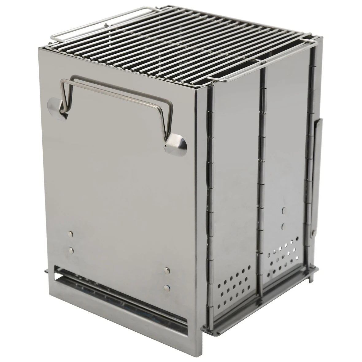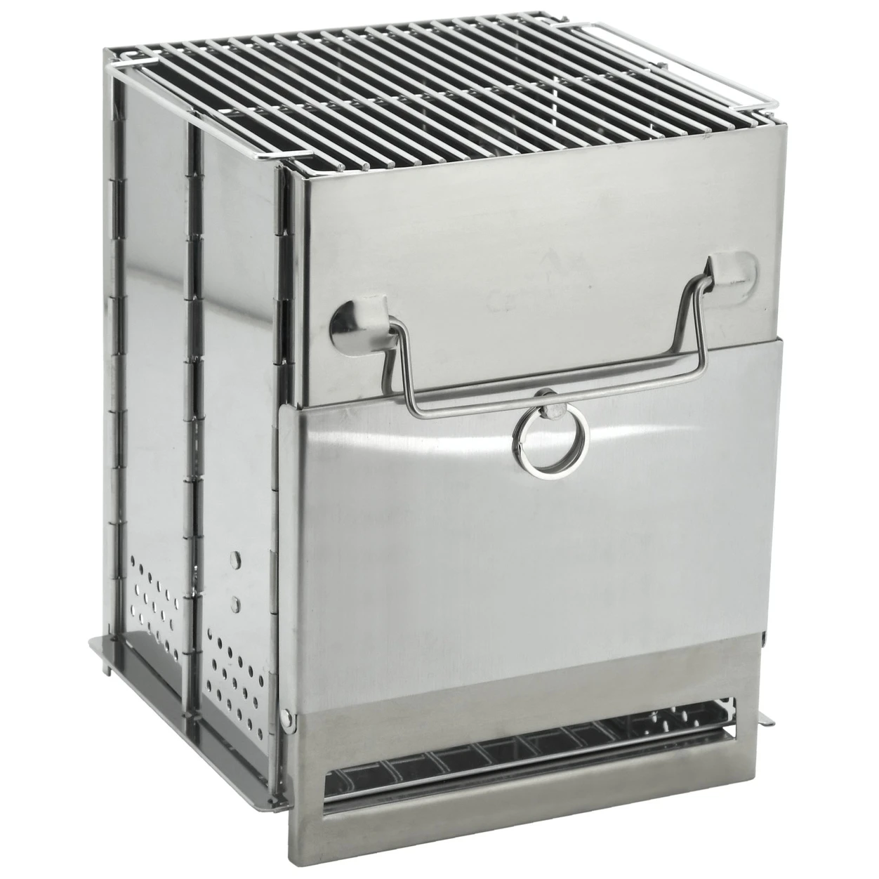 Kompakter Reisegrill Cattara Würfel aus hochwertigem Edelstahl mit glänzender Oberfläche. Dank seiner Brennbarkeit ist es nicht nur beim Camping ein toller Begleiter. Der Grill ist für Holz und Holzkohle geeignet.