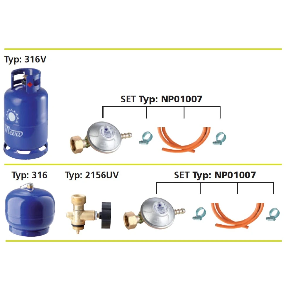 Für den Anschluss an eine 2 kg PB-Flasche ist der Kauf folgender Produkte erforderlich: