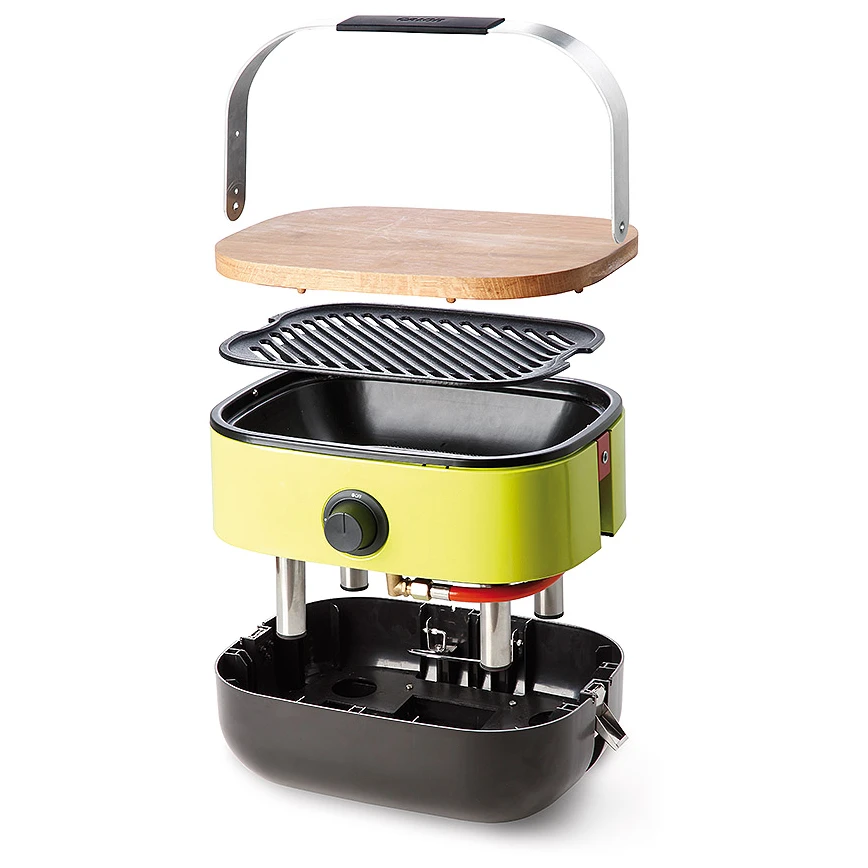 Der handliche, tragbare Campinggrill Meva Picnic mit emailliertem Rost und Schneidebrett ist ein ideales Set zum Grillen.