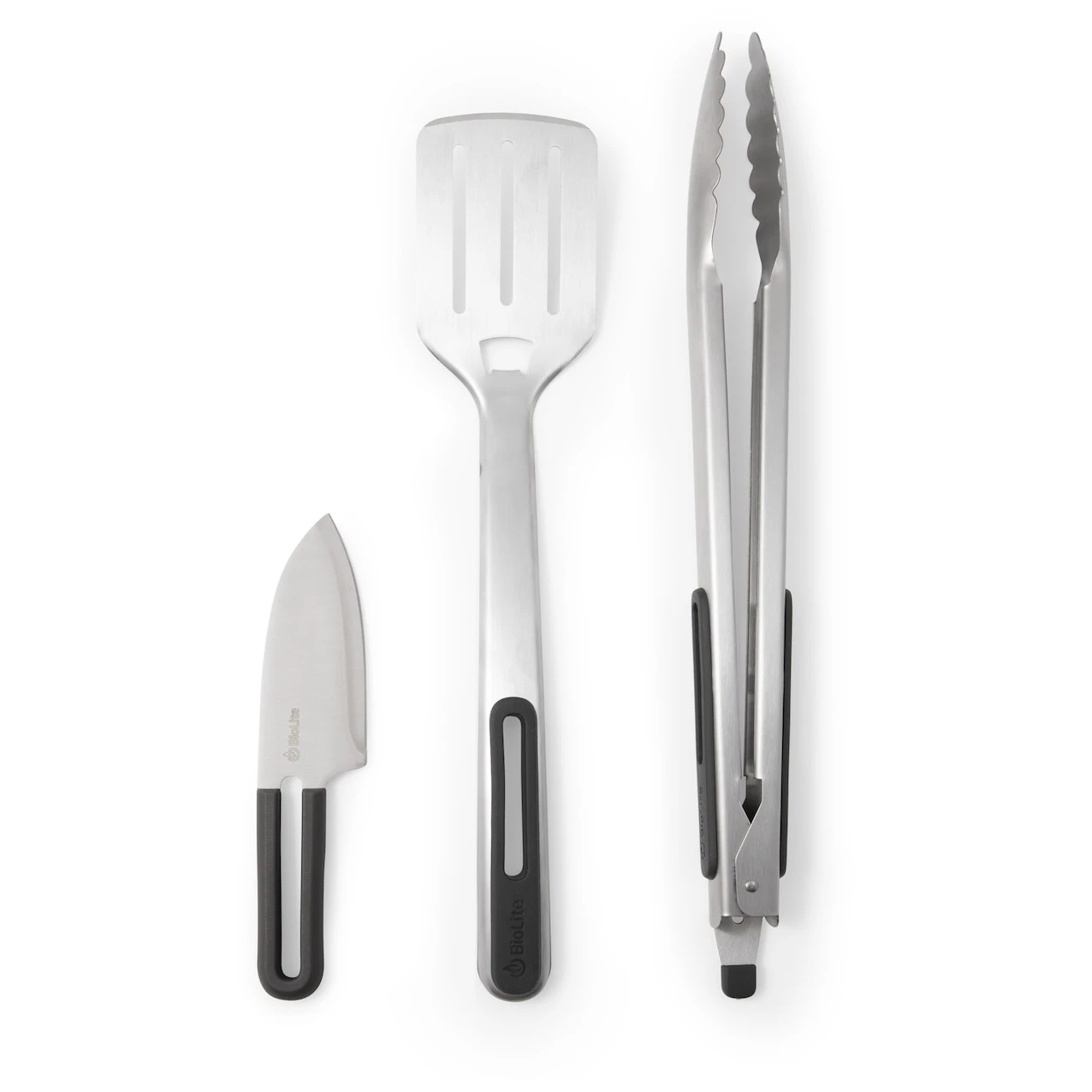 Das Biolite Prep and Grill ToolKit ist für einfaches Grillen und die Handhabung von Lebensmitteln konzipiert. Das Set ist ideal für unterwegs.