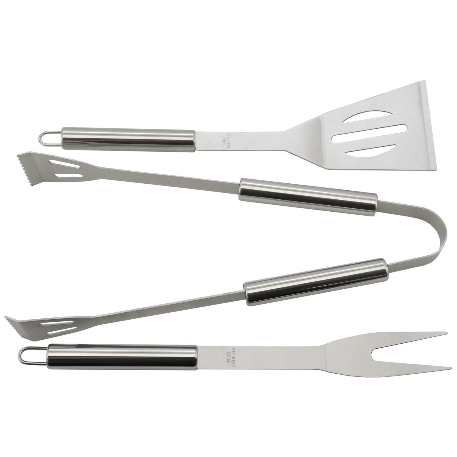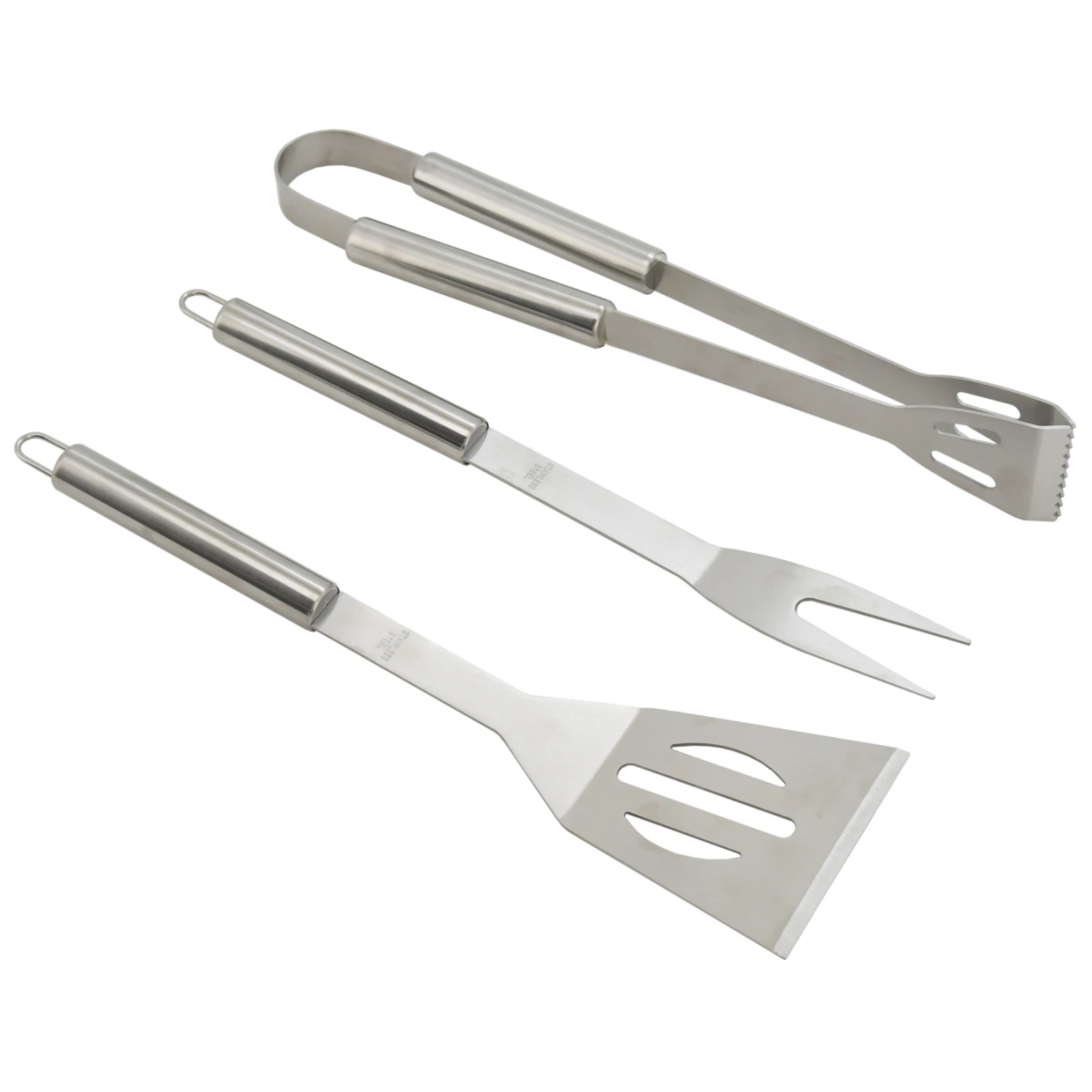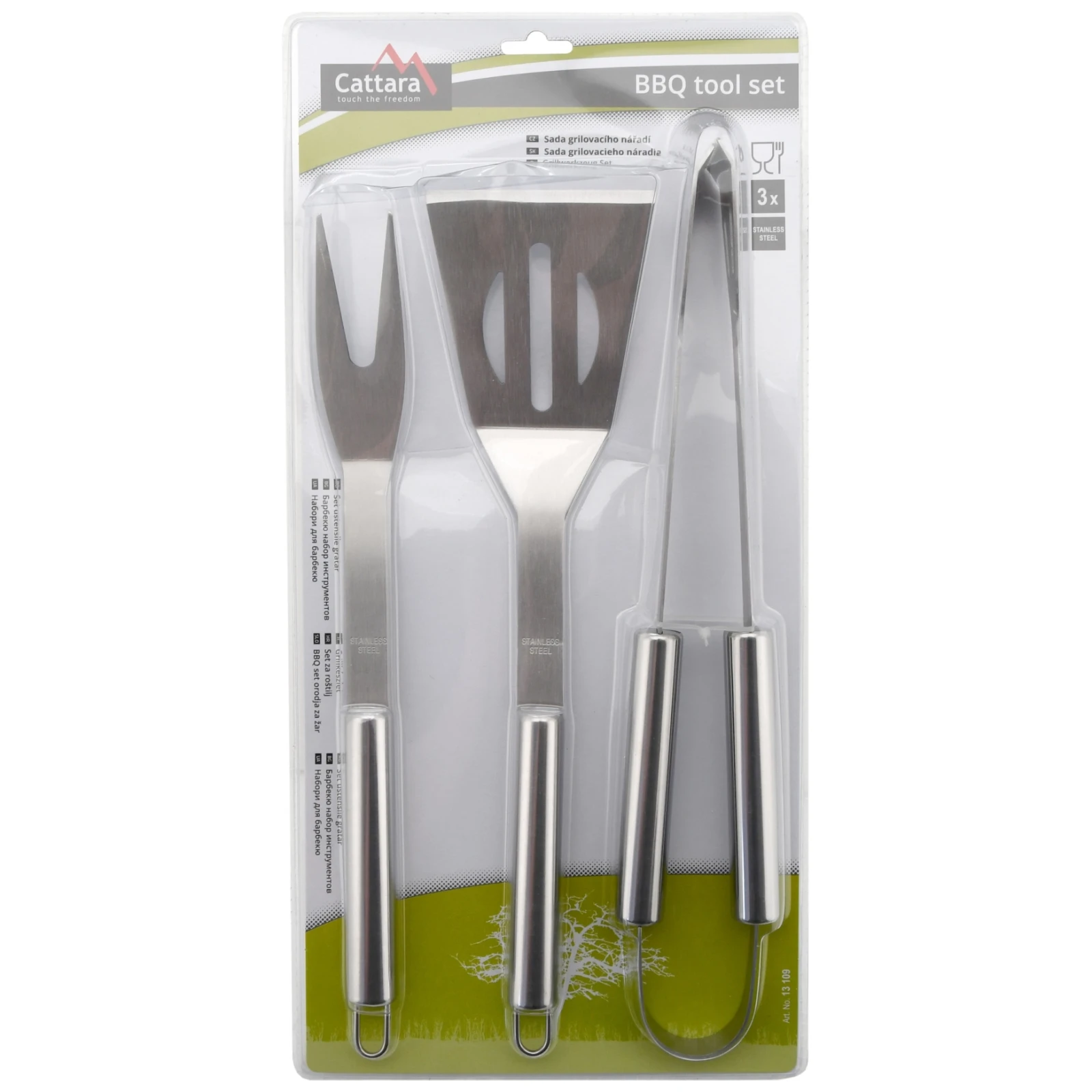 Grillwerkzeuge Cattara BBQ Blister ist ein Set mit 3 Grillwerkzeugen, bestehend aus Wender, Gabel und Zange. Jedes Werkzeug ist aus hochwertigem Edelstahl gefertigt.