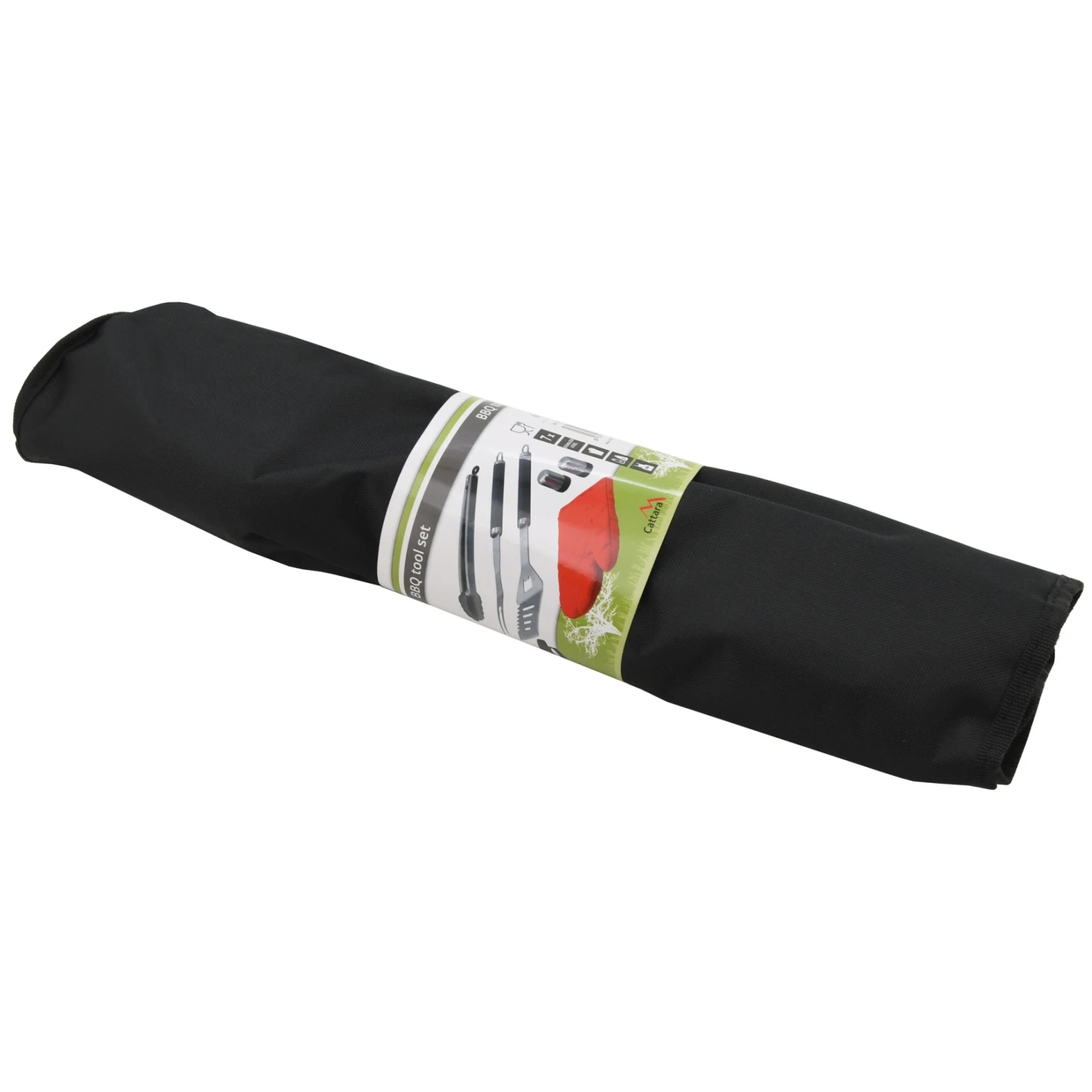Grillbesteck-Set 7-tlg. + Schürze Cattara bestehend aus einer Schürze mit Taschen und Salzstreuer, einem Pfefferstreuer, einem Handschuh und klassischen Tools wie Wender, Gabel und Zange. Die einzelnen Werkzeuge sind aus hochwertigem Edelstahlgefertigt und nicht unnötig geformt, was die Reinigung deutlich erleichtert. Die Griffe der einzelnen Tools sind aus Silikon gefertigt und liegen optimal in der Hand. Zusätzlich können alle Werkzeuge an einem Haken aufgehängt werden. Das Besondere an diesem Set ist vor allem die Schürze selbst, die die Kleidung des Meisterkochs schützt, sodass dieser seine Utensilien immer griffbereit hat. Die Schürze lässt sich zudem zusammenfalten, sodass Sie alle Werkzeuge platzsparend verstauen können.