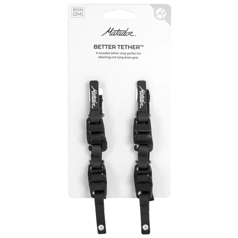 Better Tether (2er-Pack) vom Hersteller Matador ist ein langlebiger und vielseitiger 2-Meter-Nylongurt zum Befestigen von Ausrüstung an Rucksäcken, Motorrädern oder Dachgepäckträgern mit einer maximalen Belastung von 90 kg. Der Gurt verfügt über Schnellverschlussschlaufen, eine beidhändige Einstellung für eine einfache Handhabung sowie Hypalon-Berührungspunkte und -Schlaufen. Es besteht aus Nylon und die Hardware aus eloxiertem Aluminium.