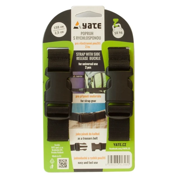 Der stabile Gurt Yate 2,5 x 150 cm hat eine Belastbarkeit von bis zu 50 kg. Mittels eines Schnellverschlusses aus Kunststoff lässt sich ein Schlafsack ganz einfach, beispielsweise an einem Rucksack, befestigen.