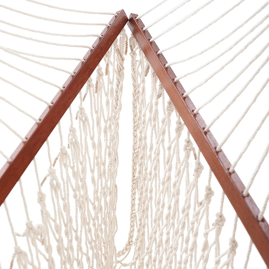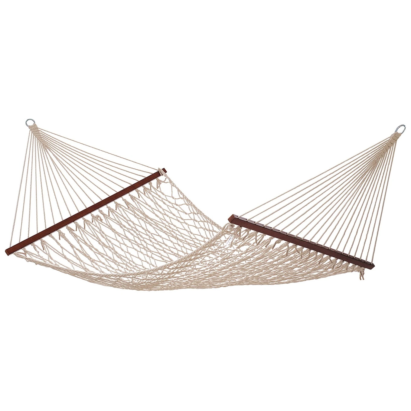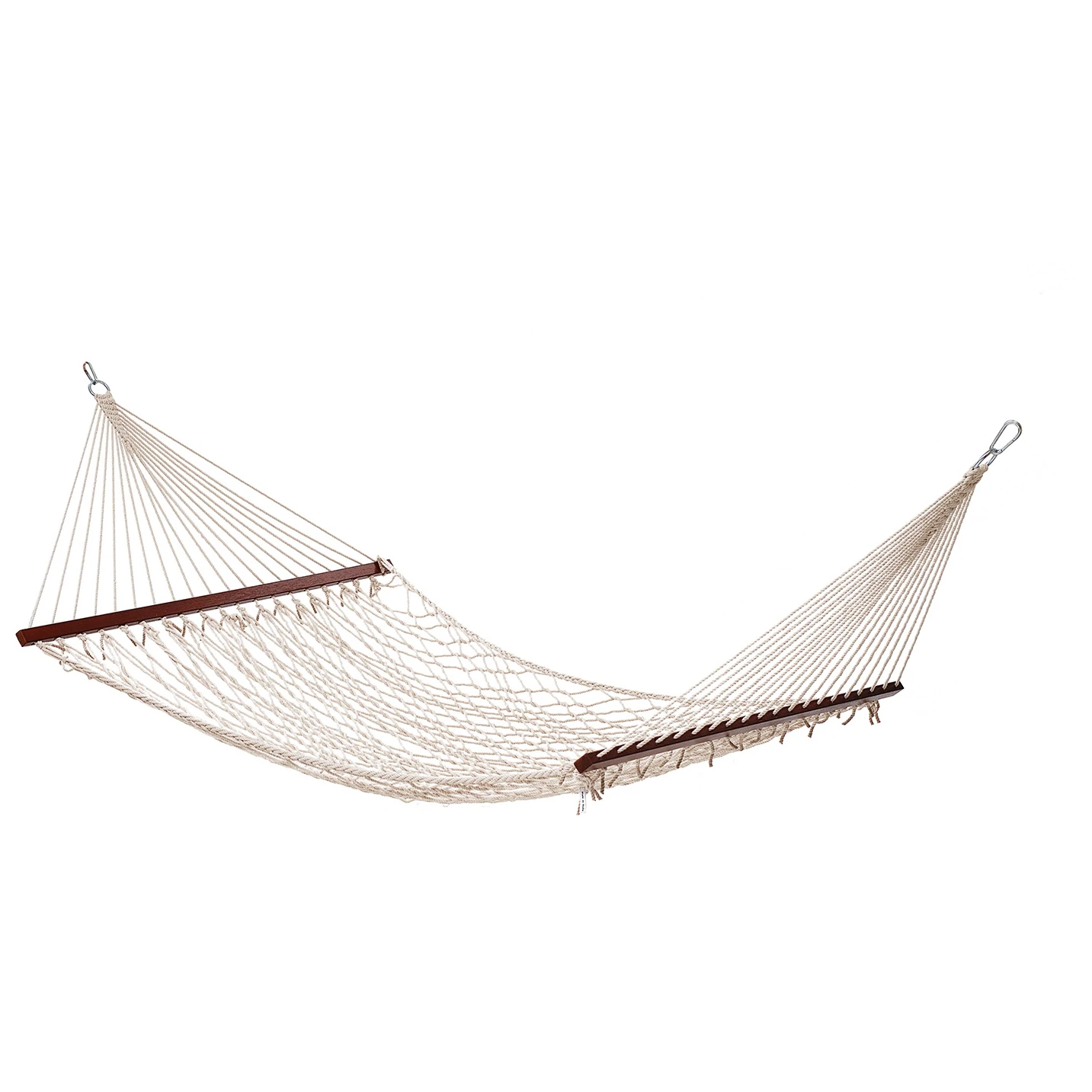 Die klassische Hängematte Classic2 vom Hersteller Hamaka.eu ist aus hochwertigstem Baumwollgarn handgestrickt. Mit den Maßen 139x208 cm bietet es zwei Erwachsenen mit einem Gesamtgewicht von maximal 205 kg bequem zum Ausruhen oder Träumen. Am meisten wird es jedoch von Kindern geschätzt, die es mit Hilfe ihrer Fantasie in ein Hängebett für gruselige Piraten oder in Tarzans Heim verwandeln.