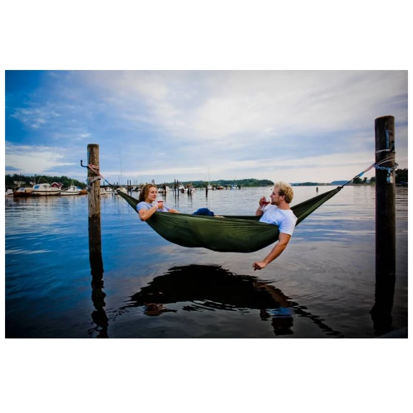 Hamaka bedeutet im Baskischen Hängematte. Sie ist aus starkem, aber leichtem und angenehmen Polyester oder Baumwolle gemacht, die luftdurchlässig sind. Sobald der Regen aufhört und ein wenig Wind weht, ist die Hamaka schnell wieder trocken. Sie dient vor allem der Entspannung und dem Relaxen. Sie eignet sich perfekt zum Schlafen an Orten, an denen es nicht möglich oder angebracht ist, ein Zelt aufzustellen oder eine Isomatte auszurollen. Sie können sie zu Hause im Wohnraum, auf der Terrasse, im Garten, in der Natur oder auch auf Reisen nutzen.