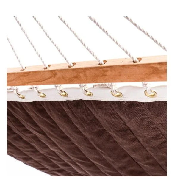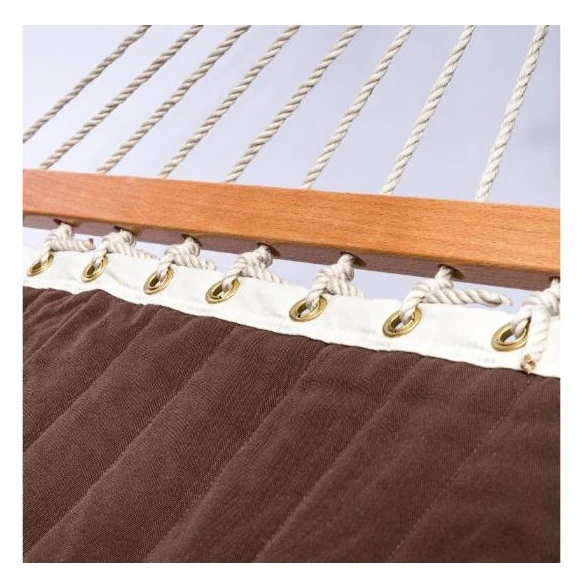 Eine der beliebtesten Hängematten Exclusive der Marke Hamaka.eu ist für zwei Personen mit einem Gesamtgewicht von bis zu 205 kg ausgelegt. Das angenehme, atmungsaktive Material mit Füllung ist längs vernäht, was die Weichheit des Netzes und den Liegekomfort erhöht. Die offene Form des Netzes wird durch zwei Holzverstärkungen gewährleistet. Eine wunderbare Ergänzung für Ihre Terrasse oder Ihren Pool, wo Sie träumen können.