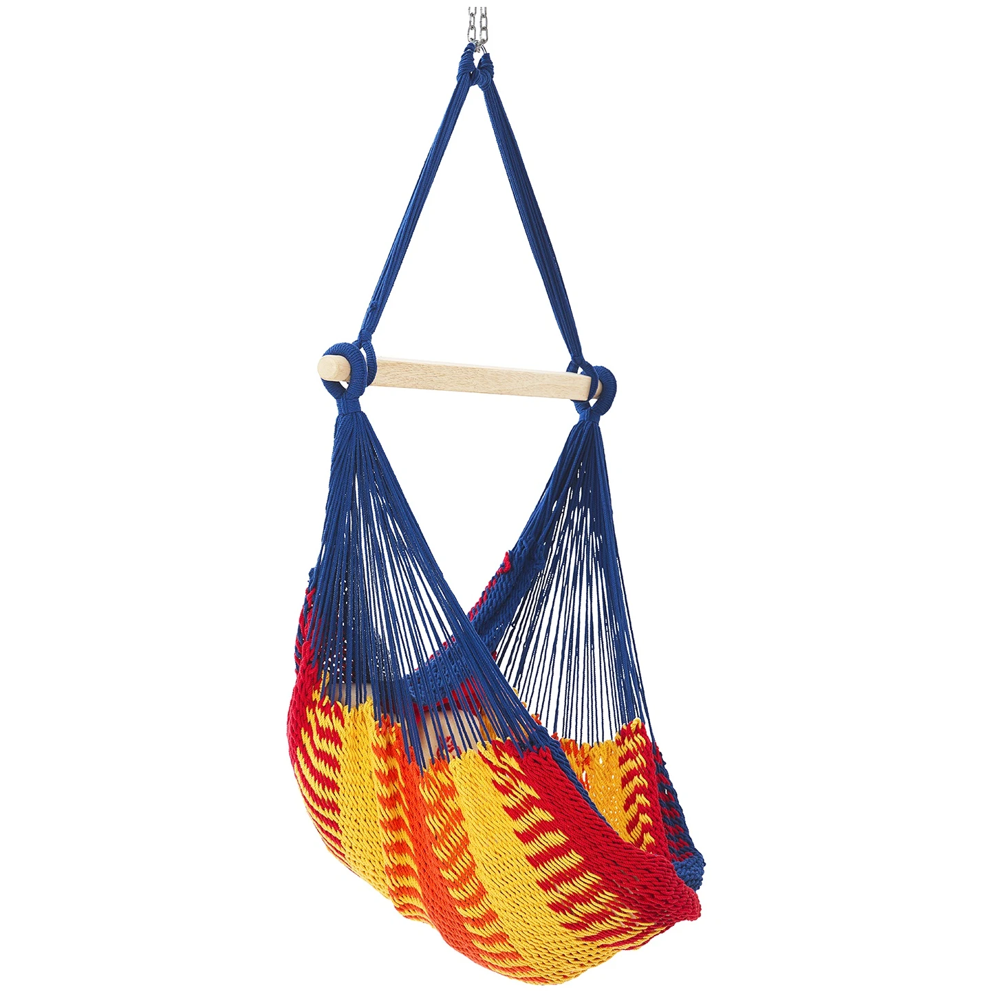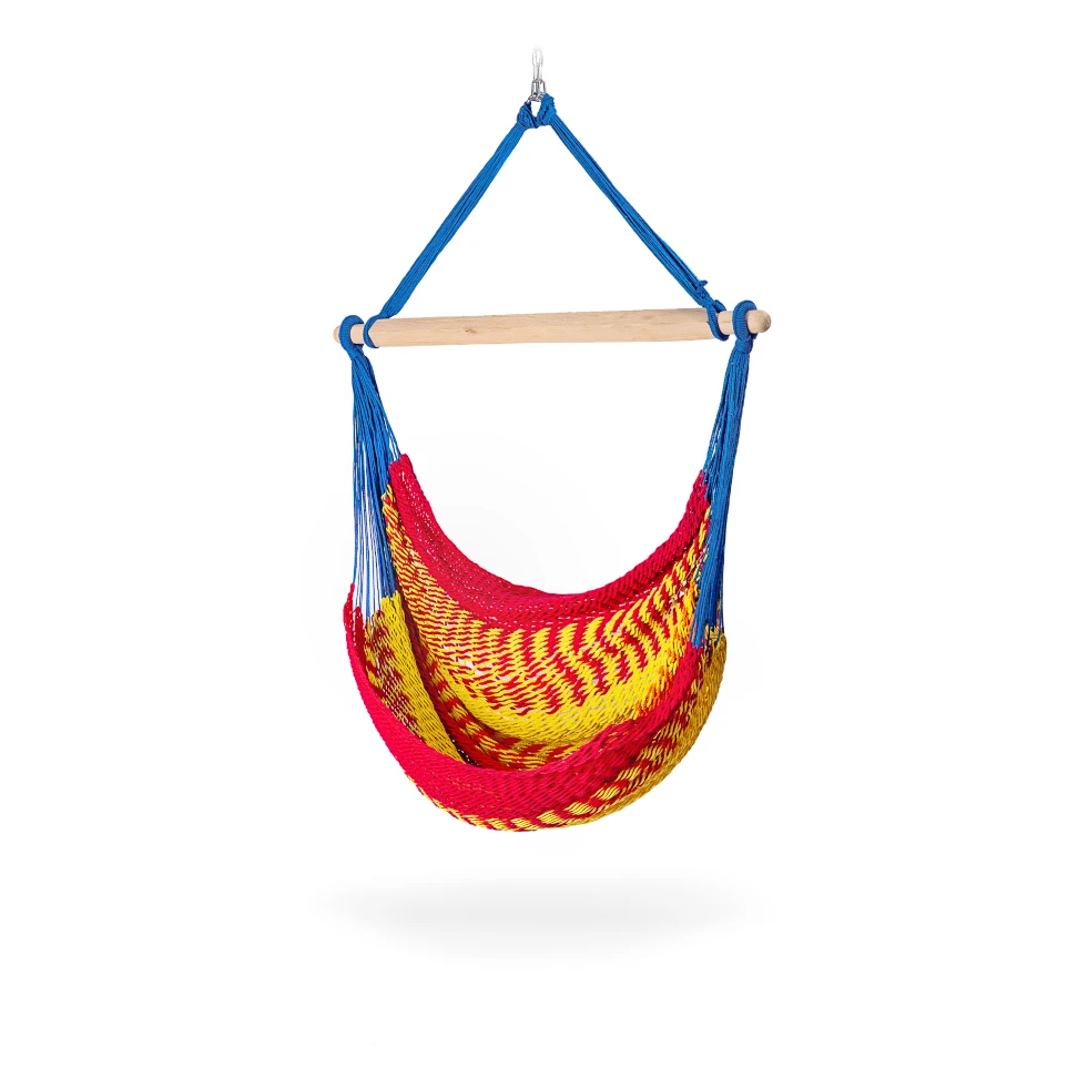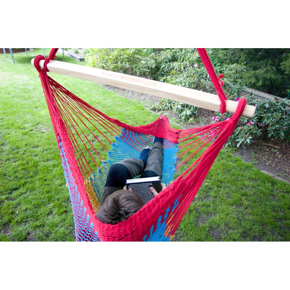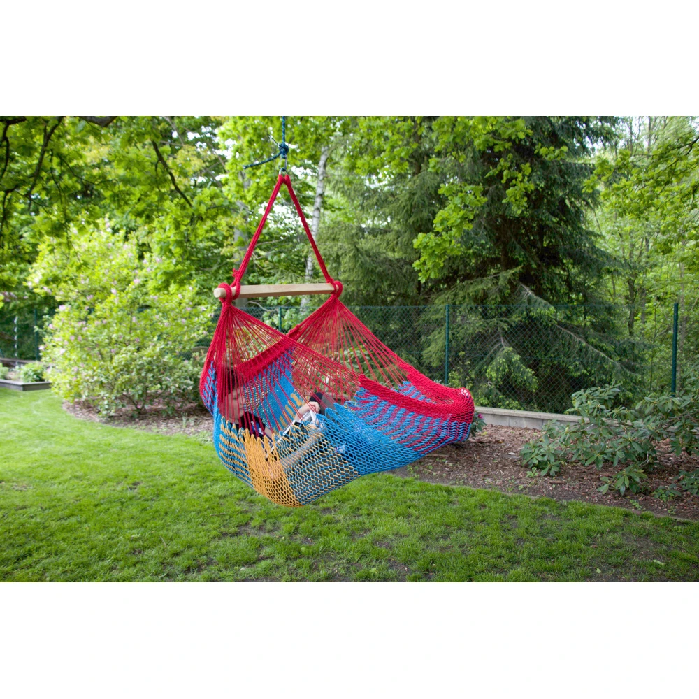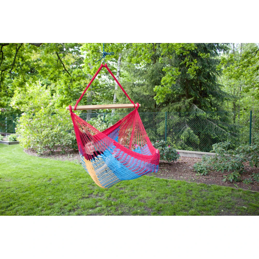 Der Hängematten- und Hängemattenspezialist Hamaka.eu bringt den Hängesessel Sierra 2in1 IH auf den Markt, in dem Sie nicht nur sitzend, sondern auch liegend faulenzen können. Durch die gewählte Fertigungstechnik ist es möglich, das Netz in die Länge zu spannen und so eine Liegefläche zum Ausruhen zu schaffen. Das farbenfrohe Design weckt Erinnerungen an einen heißen Sommer oder Träume von einem exotischen Urlaub. Geeignet für den Außen- und Innenbereich.