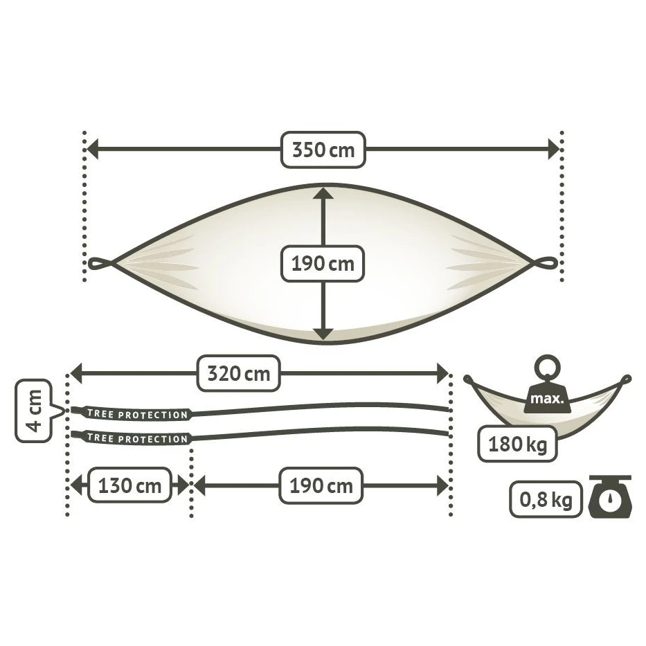 Die Calibri Double 3.0 Hängematte von La Siesta ist federleicht, passt in jeden Rucksack und bringt alles mit, was du brauchst, um die schönsten Orte auf deinen Reisen in Ruhe zu genießen. Die nächste Generation des beliebten Colibri 3.0-Netzwerks ist dank neuem Design noch komfortabler. Colibri besteht aus hochwertiger Fallschirmseide, die sehr stark, aber dennoch dünn und atmungsaktiv ist. Dank des einfachen Aufhängesystems, bestehend aus ultraleichten Aluminiumclips und breiten, baumschonenden Befestigungsbändern, lässt sich die Hängematte leicht aufhängen und abnehmen. Außerdem können Sie die Höhe des Netzes verstellen, bevor Sie „Siesta“ sagen. Außerdem können Sie den Colibri ganz einfach in eine Stranddecke, eine leichte Decke oder einen Sonnenschirm verwandeln.